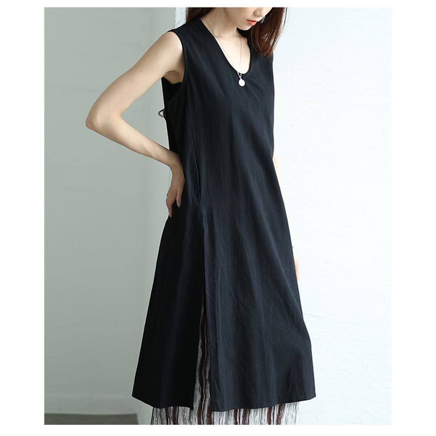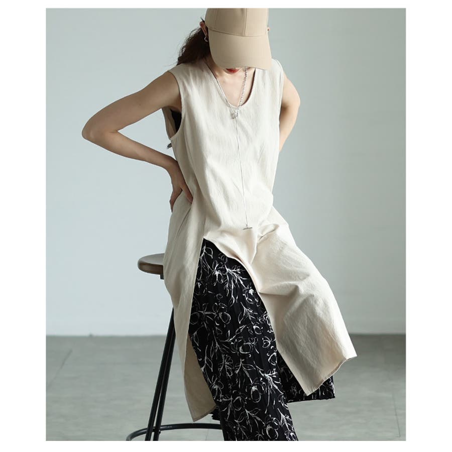 重ねてサマになる涼しげなノースリーブコットンチュニック レディース ファッション