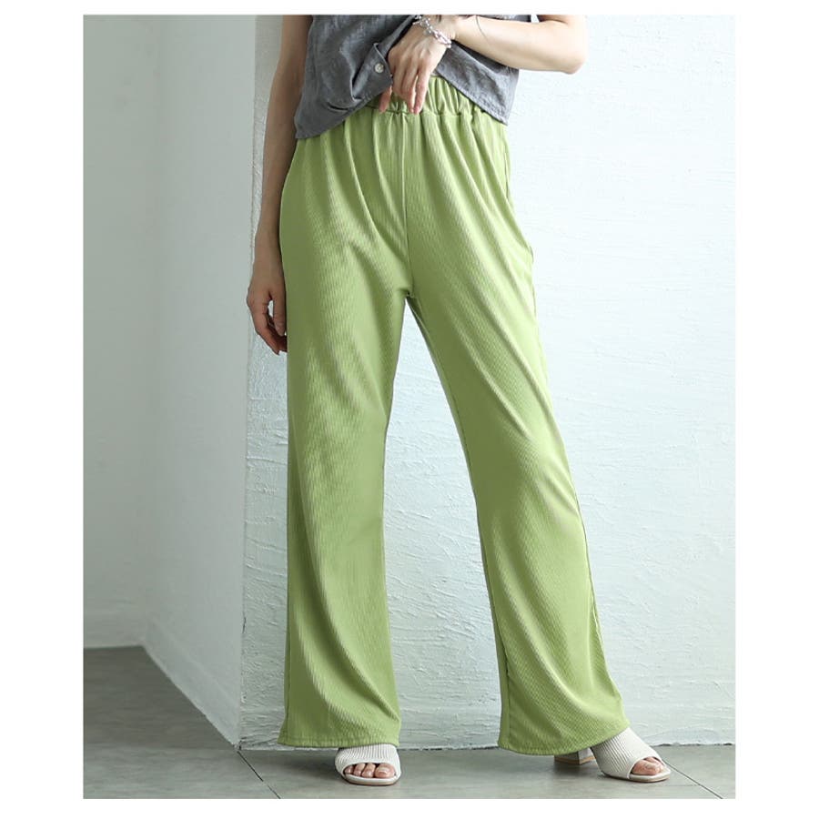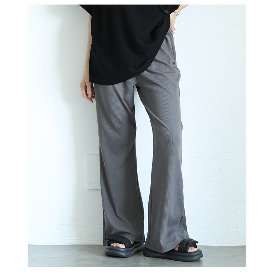 ウエストゴムリブフレアロングパンツ レディース ファッション