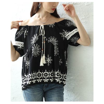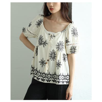 ナチュラルな風合いを愉しむエスニック刺繍の2wayショルダートップス レディース
