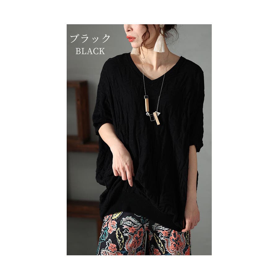 特徴: 綿 コットン エンボス Vネック
