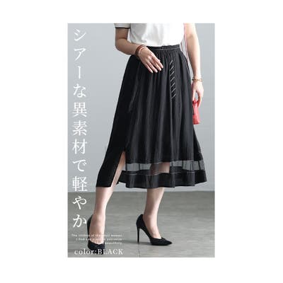 爽やかな風を感じるシフォン切替フレアスカート レディース ファッション