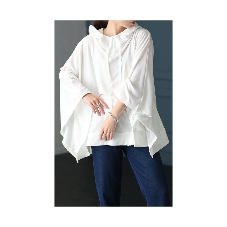 一瞬でモードな着こなしポンチョ風パーカー レディース ファッション