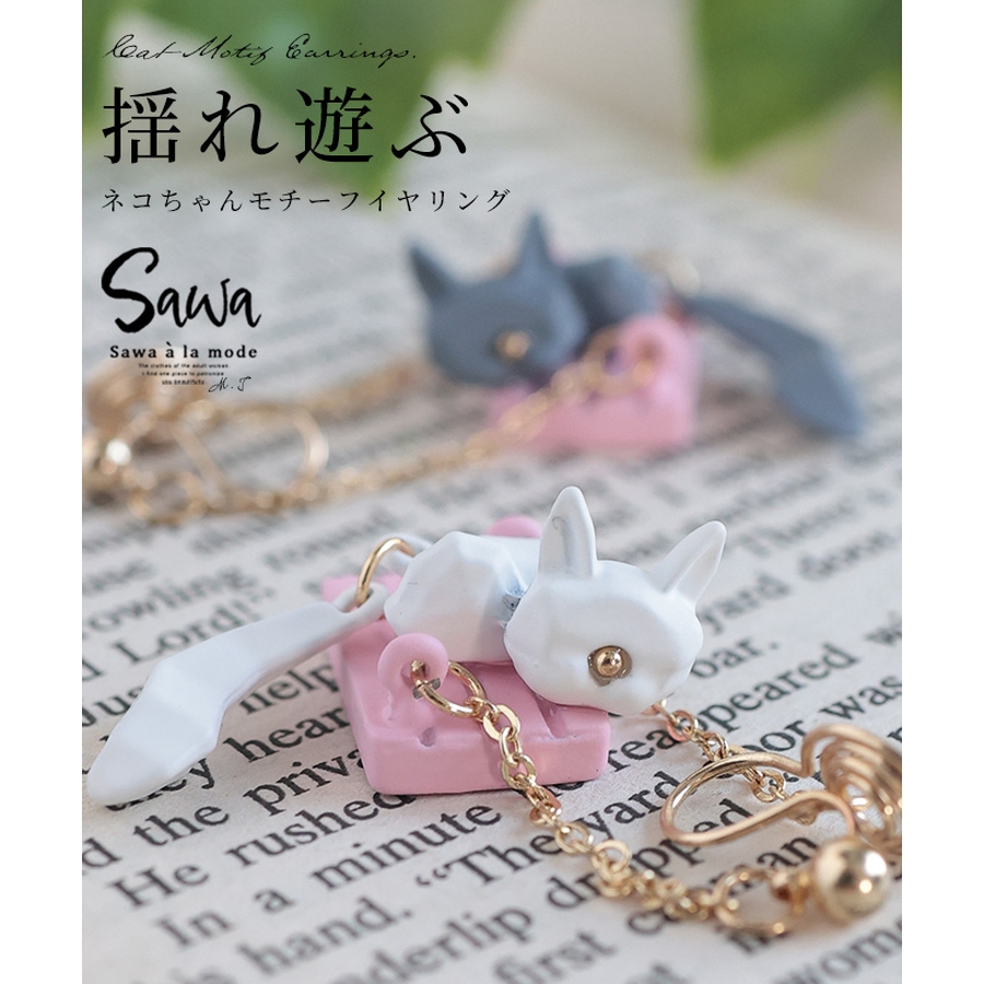 ゆらゆらとブランコに乗った猫ちゃんが耳元で揺れ、愛嬌を降り注ぐようなイヤリング。