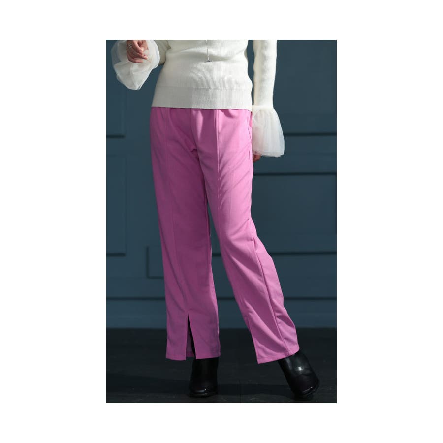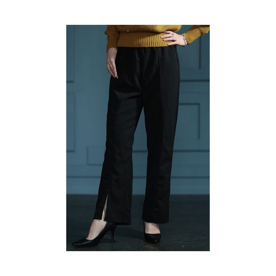 ウエストゴム仕様でストレスフリーな穿き心地に、着脱も楽々。センターシームのラインに、さり気なく裾に配されたスリットが縦ラインを強調し、スタイルアップに仕上げてくれます。足下のスリットで抜け感をプラスし、ロング丈でも重たく感じにくくさせます。