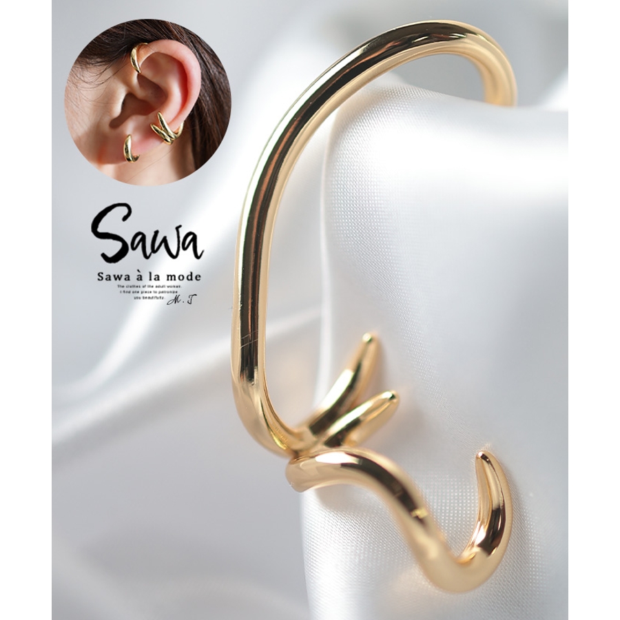 耳元へ乗せるだけで今どき感のあるニュアンスを表現し、トレンド感高まるアイテム。かぎづめの様なカーブがスパイシーさをプラスし、このひとつを身に付けるだけで3つのリング風デザインに。