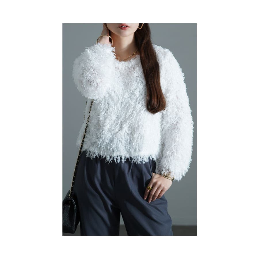 ふわふわと躍るシャギーフェザーに心ときめくトップスは、秋冬に取り入れたいアイテム。