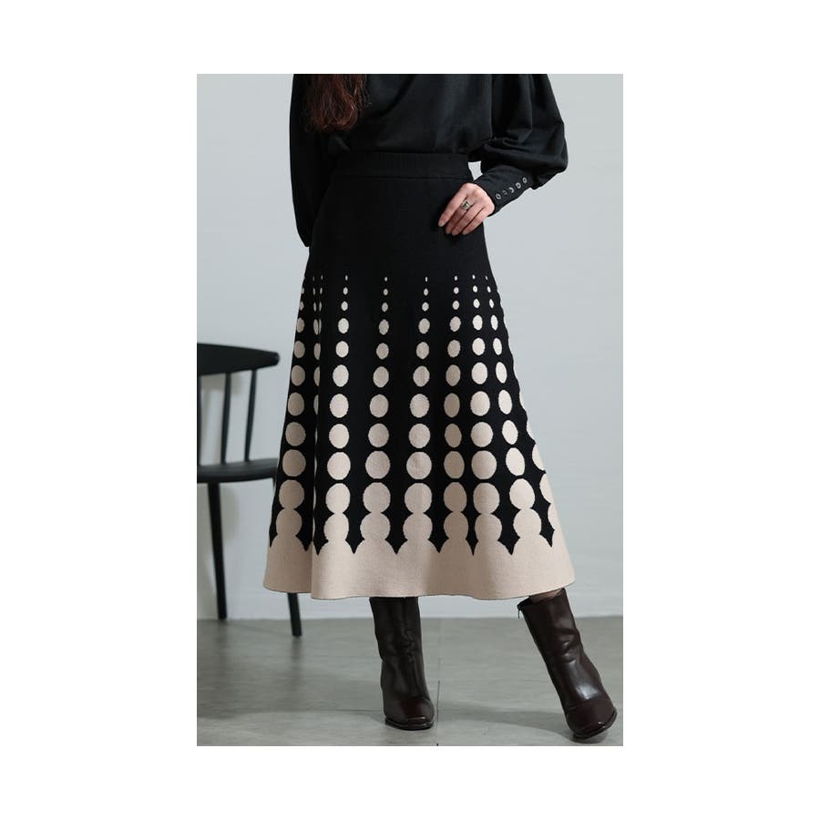 泡がのぼってくる様なグラデーションの水玉模様がキャッチーなレトロ感を演出してくれるニットスカート。