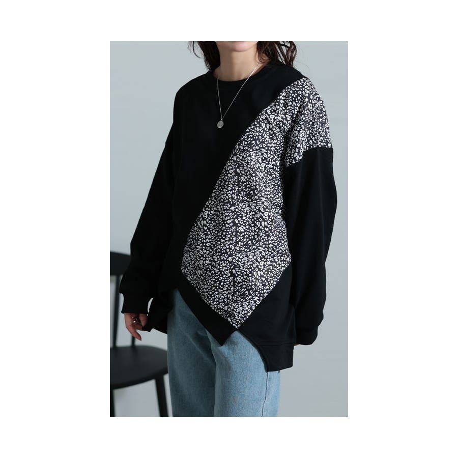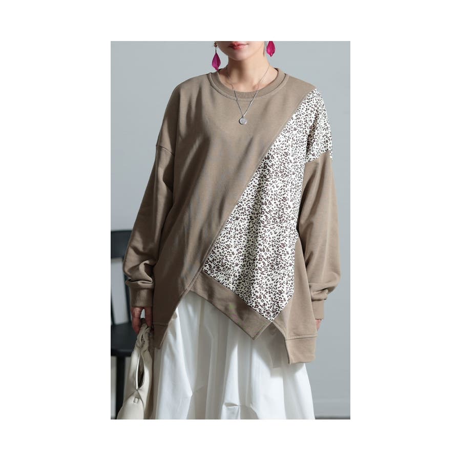 特徴: 異素材 ドッキング レオパード クルーネック イレヘム アシンメトリー