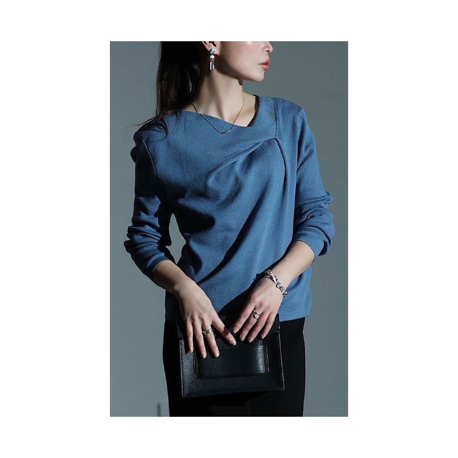 特徴: タック アシンメトリーネック ハイゲージ リブニット