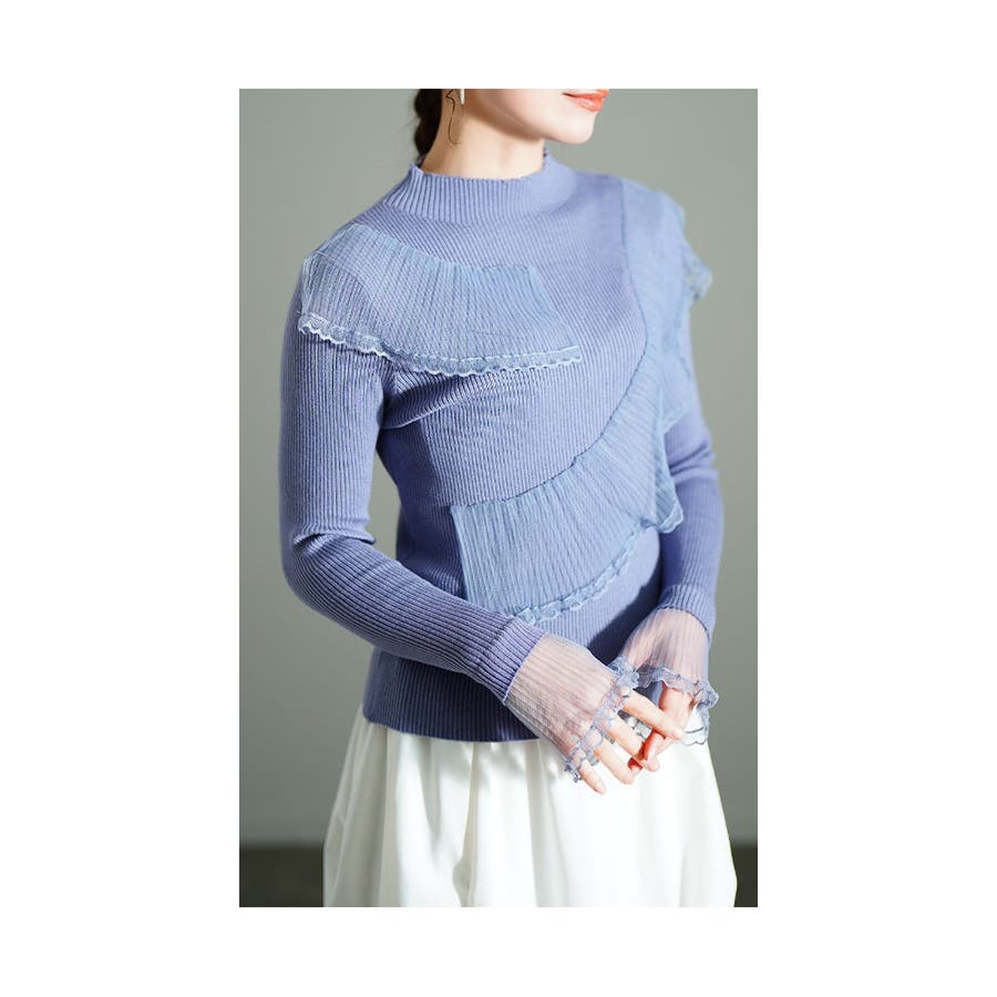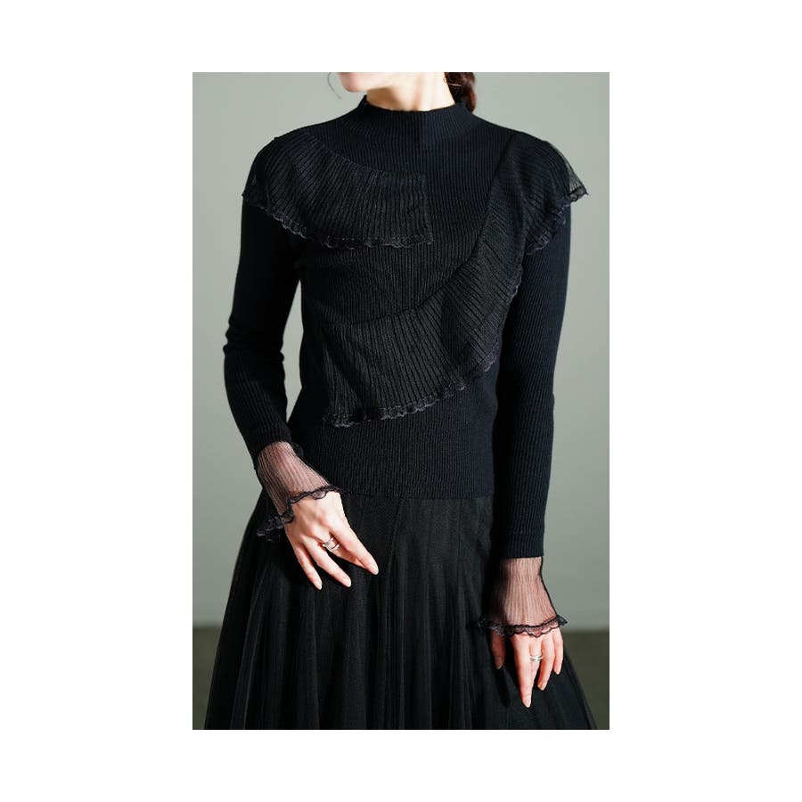 特徴: チュール レース 異素材 リブニット フレア ボトルネック