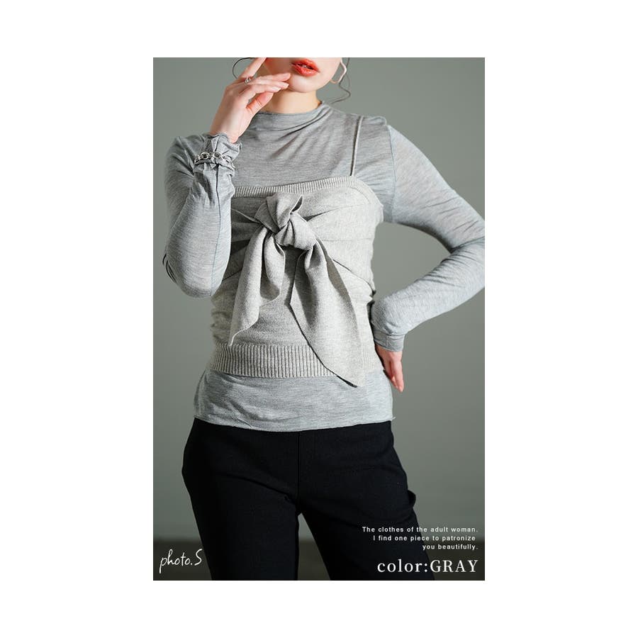 胸元華やかカットソー×ニットビスチェアンサンブル レディース ファッション