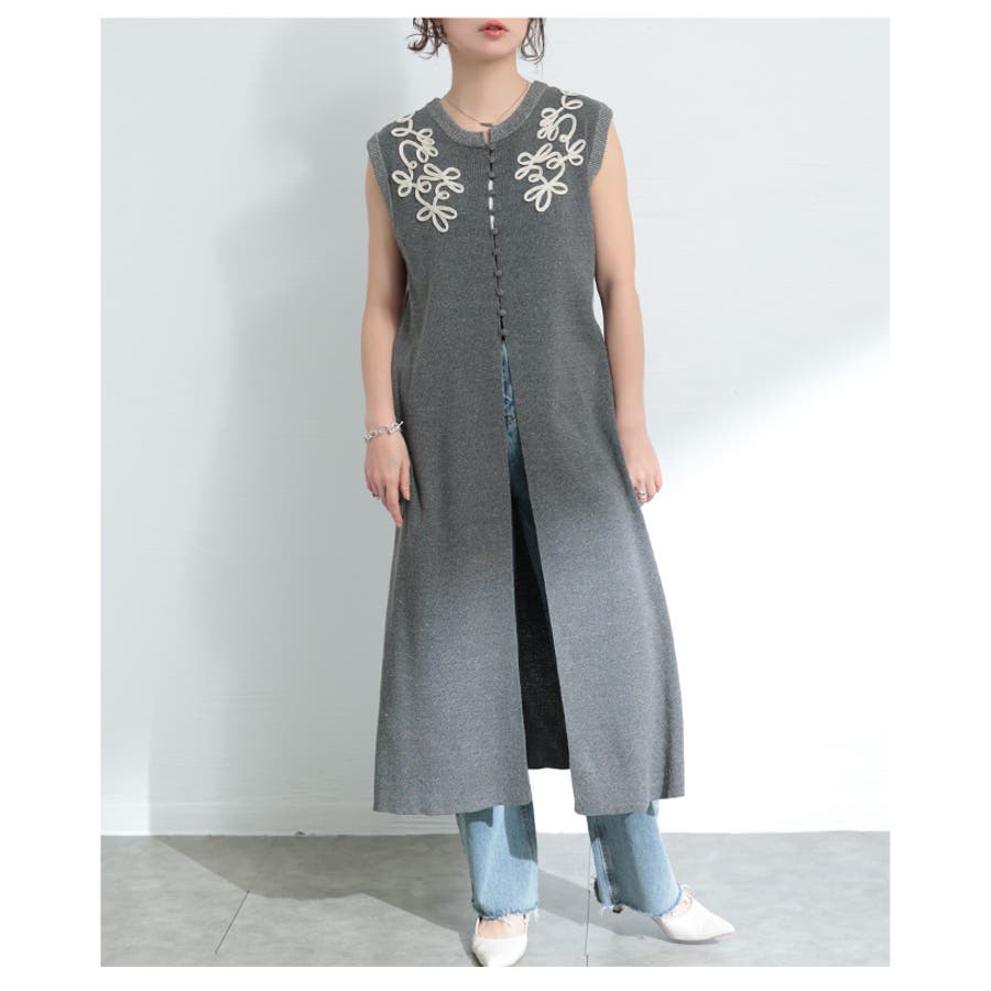 可憐さ重ねる花柄模様コード刺繍ニットジレ レディース ファッション
