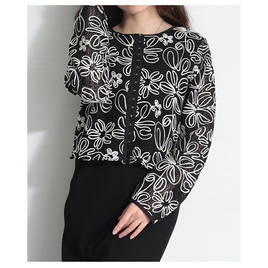 特徴: 花柄 コード刺繍 ホック メッシュ クルーネック シアー