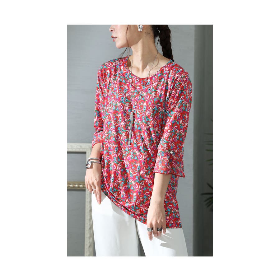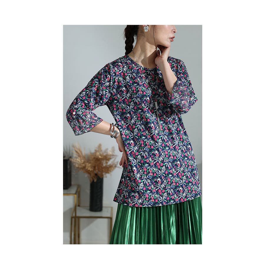 草花模様を敷き詰めたベルスリーブブラウスです。