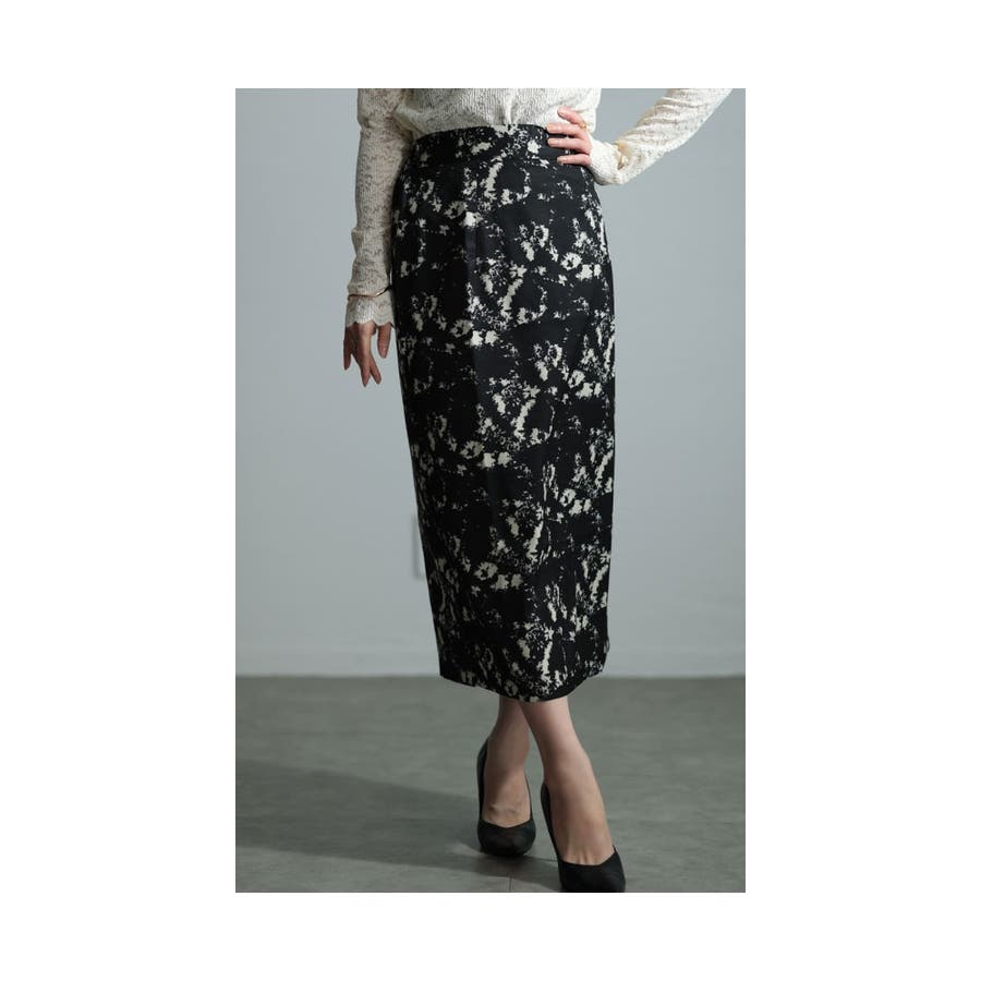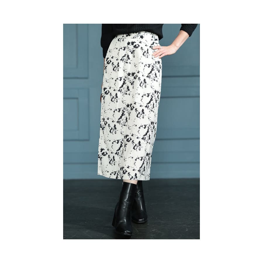 ブラシで描かれたようなデザインが躍動するモード感を引き立て、大人っぽさを演出するスカート。