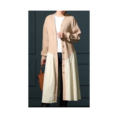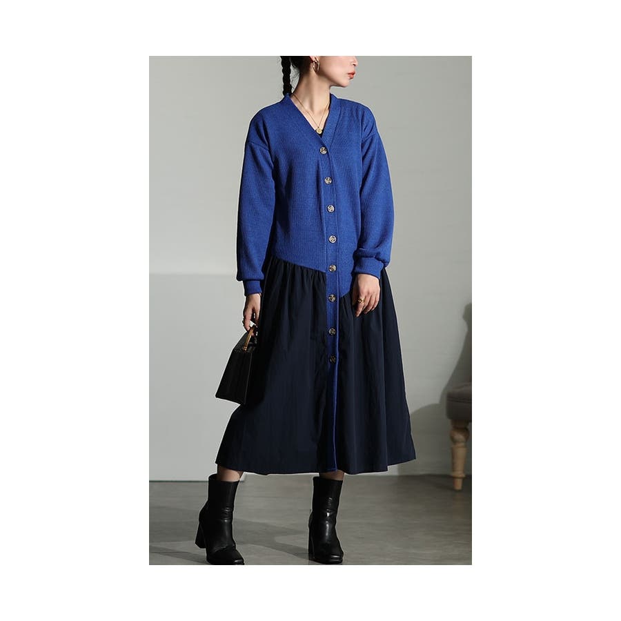 遊び心を込めた異素材カーディガンワンピース レディース ファッション