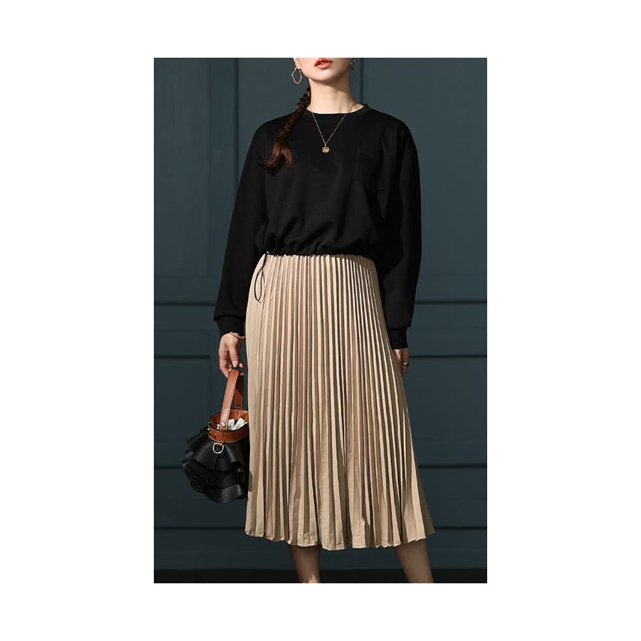 カットソーとワンピースがセットになった綺麗めスタイルが仕上がるアイテム。異素材デザインのような一体感のある大人スタイルにきまります。