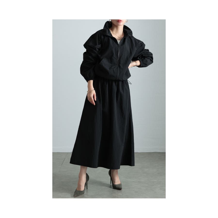 スカートは程よく広がるAラインフレアシルエット。ウエストは総ゴムを採用し、リラクシーな穿き心地で着脱も楽々。絶妙丈で、下半身をカバーしながらもすっきりとした印象に。セットアップアイテムだから、スタイリングも決まりやすく、別々でも着こなせるから、コーデの幅もグンと広がります。
