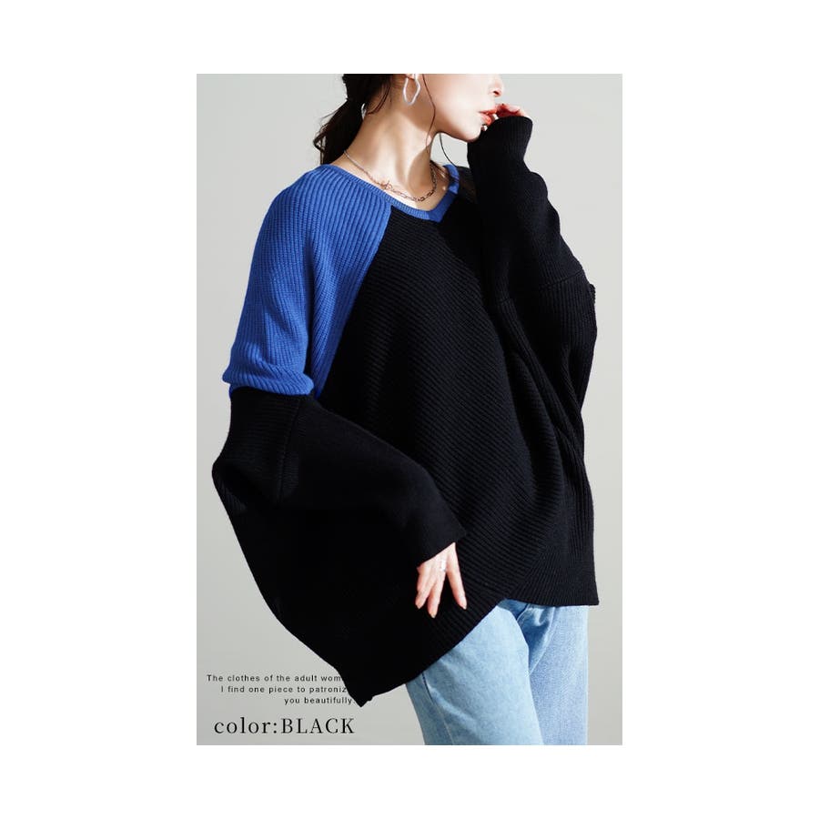 ワザあり着痩せテク配色ドルマンリブニット レディース ファッション