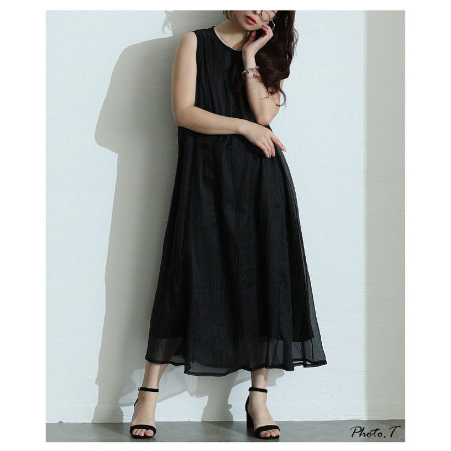 シフォンが重ねられたワンピースは、見た目にも爽やかな印象を演出してくれる綺麗めワンピース。
