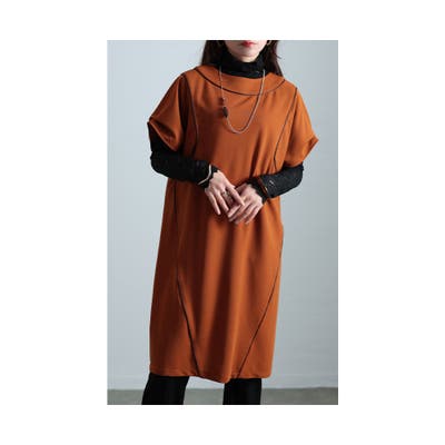 随所にパイピングが配され、裾のフロントに向かって重ねられたパイピングで着痩せ効果にも。すとんと落ちるシルエットで体型カバーを叶え、ミドル丈で大人世代にも着こなしやすい丈感に。ボトムスとの掛け算でチュニック風にも着こなせるワンピースです。