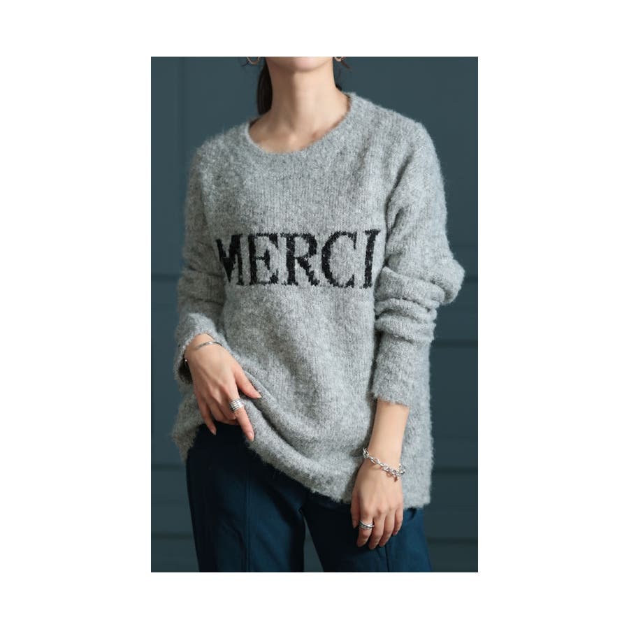 ふわふわとしたモヘアの風合いにうっとりする綺麗めニットは、大胆に描かれたロゴがリズミカルな印象を演出。