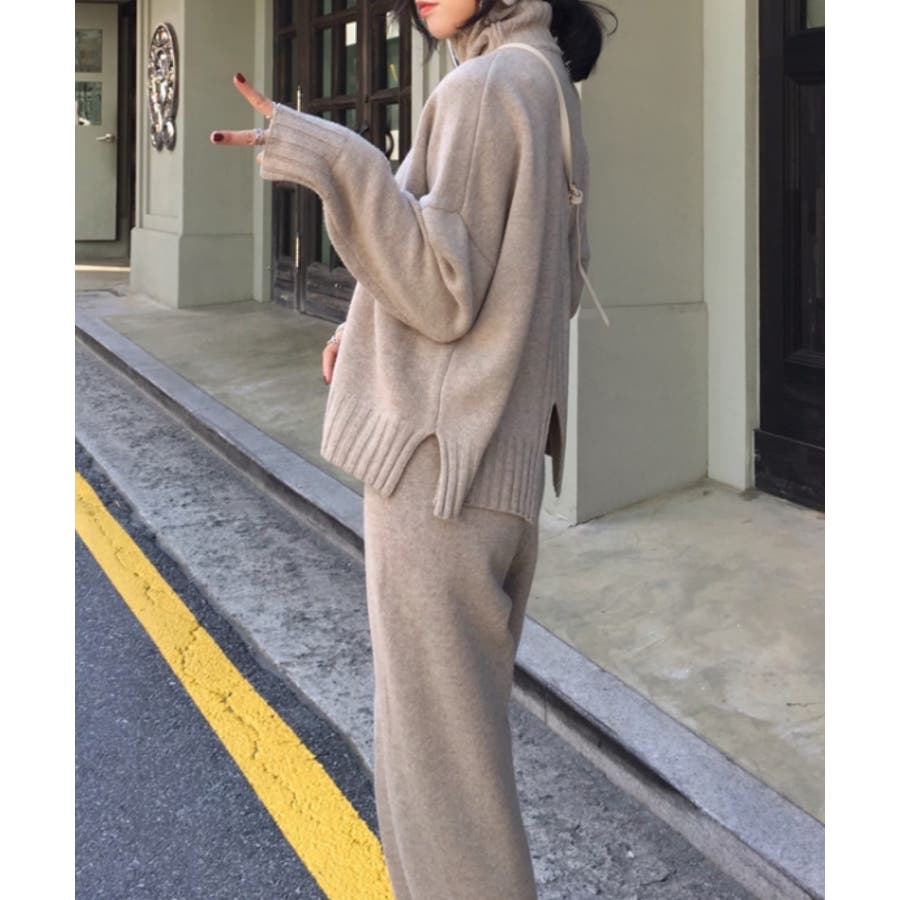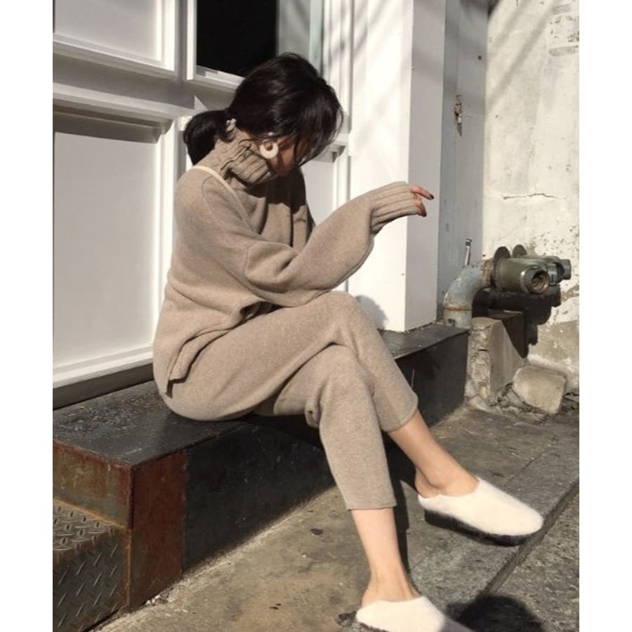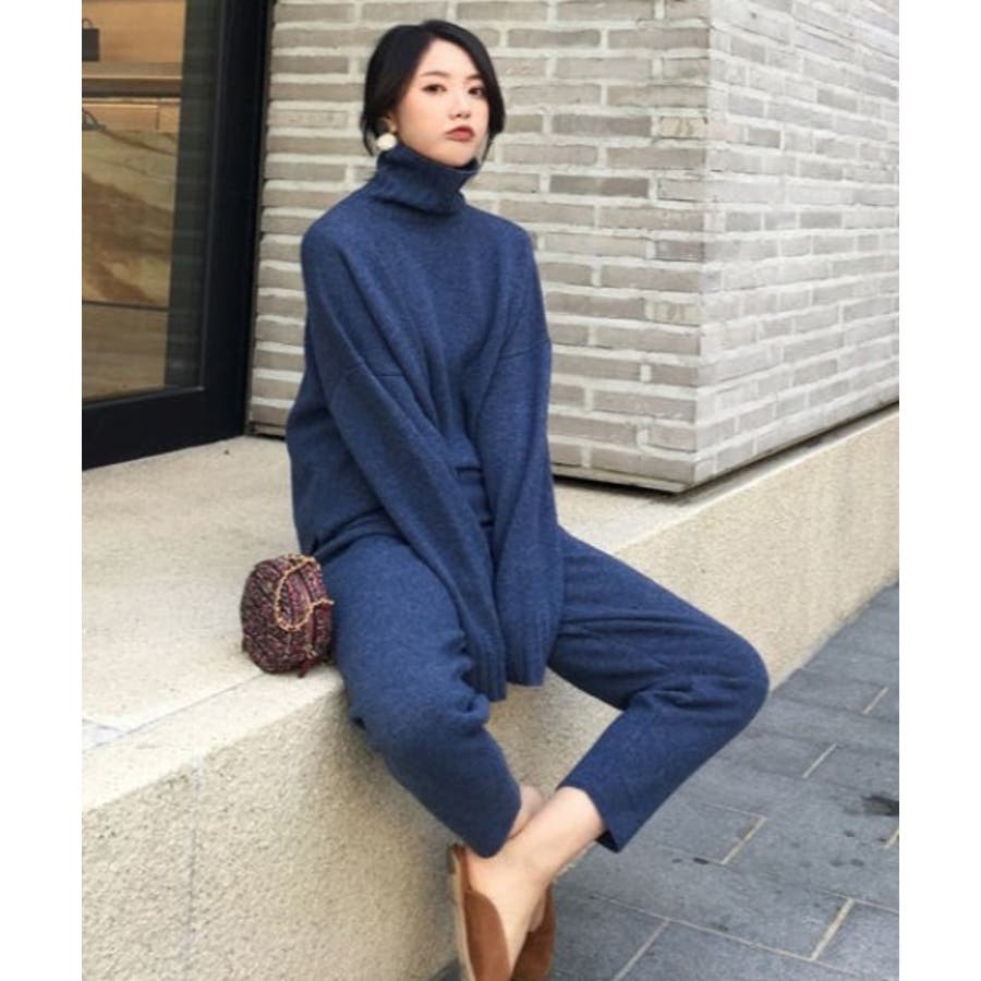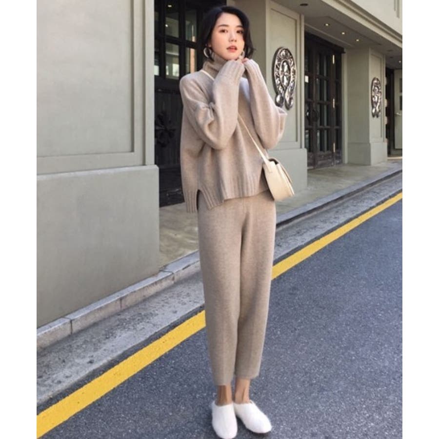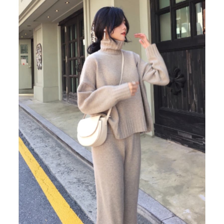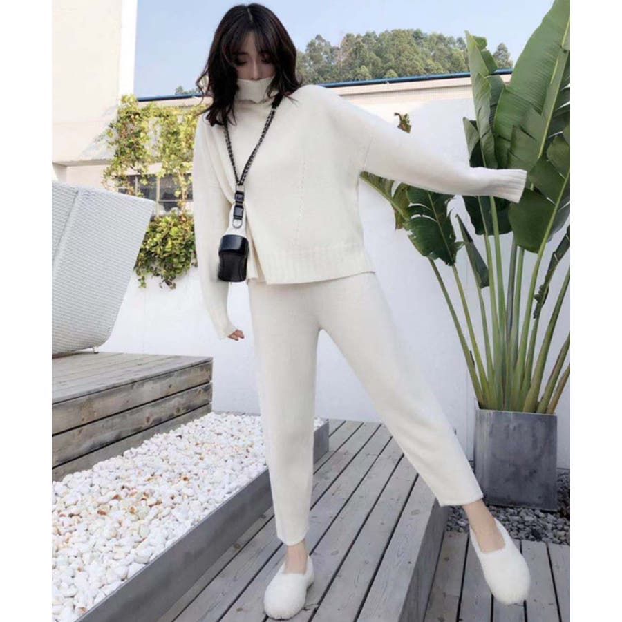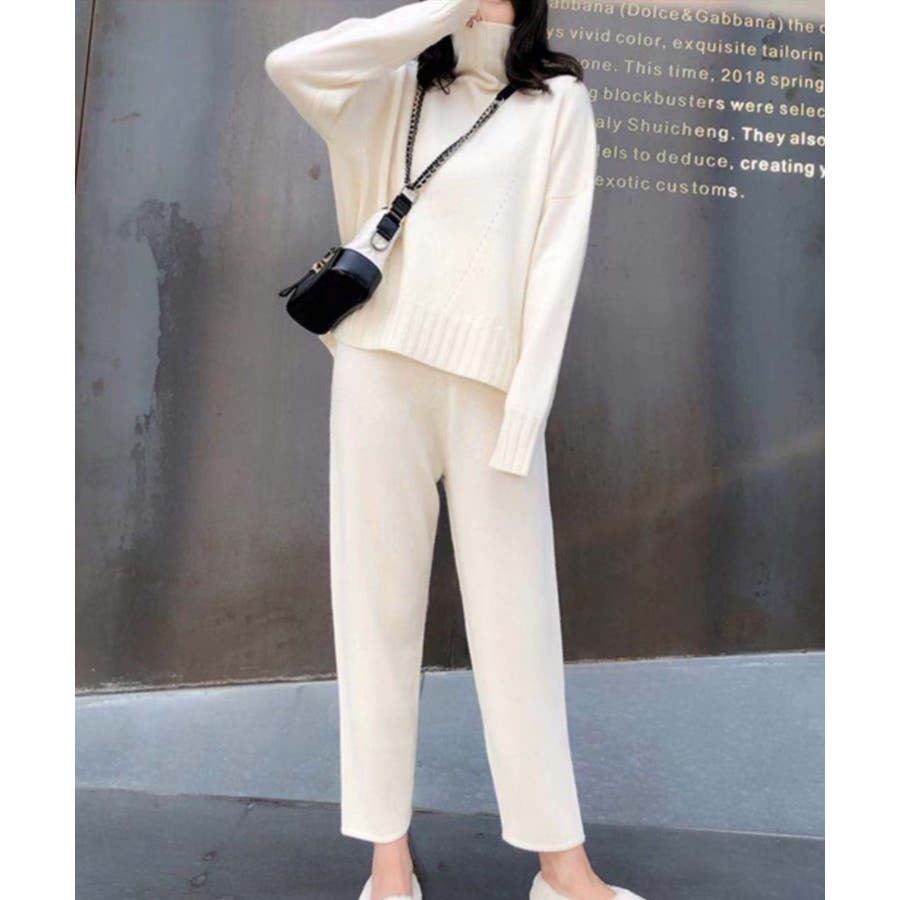 ハイネックニットプルオーバー+パンツ2点セット