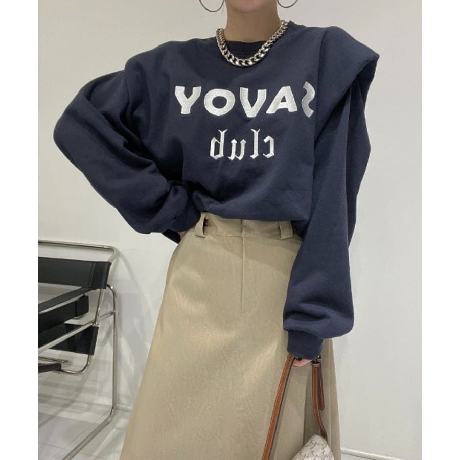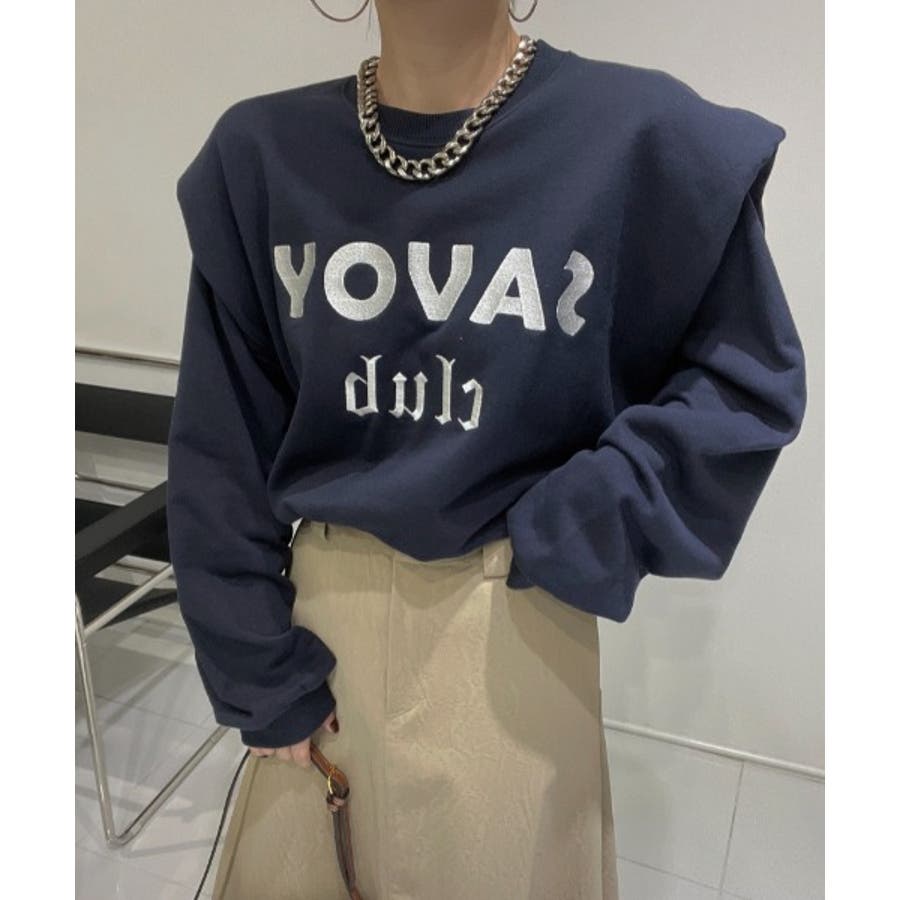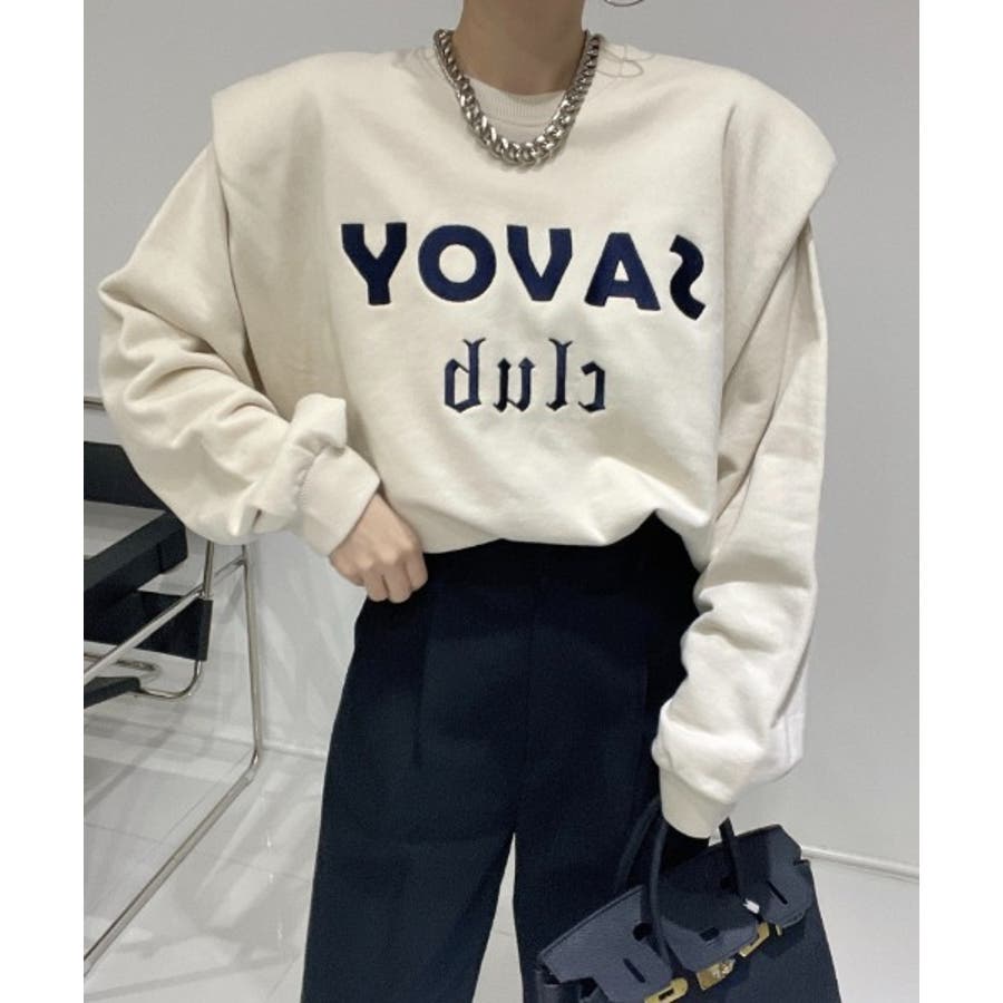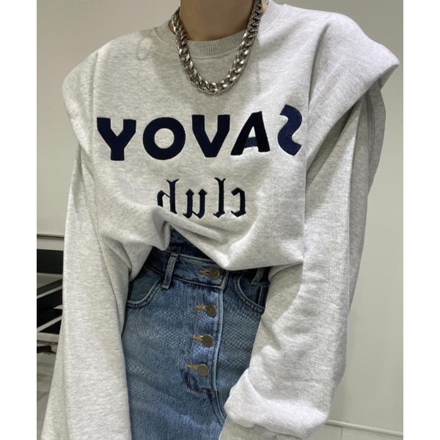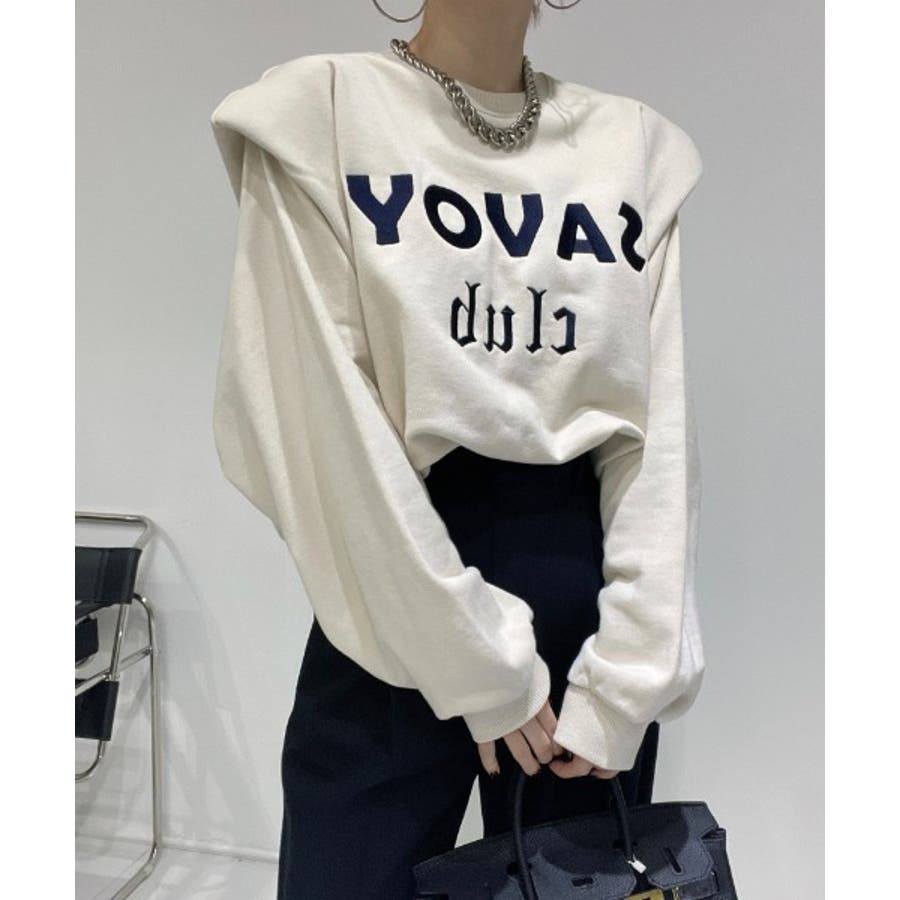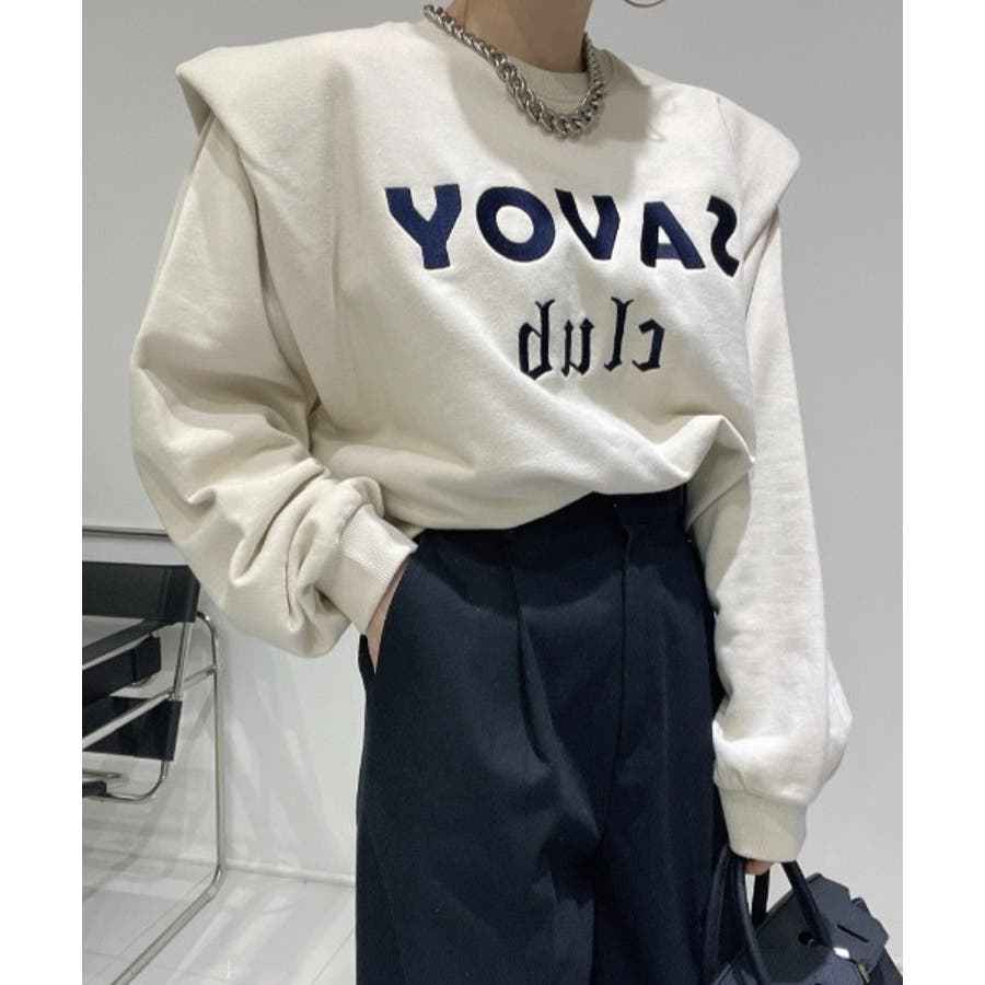 ロゴ刺繍ショルーフリル裏起毛トレーナー