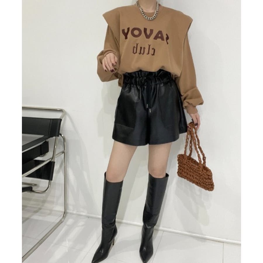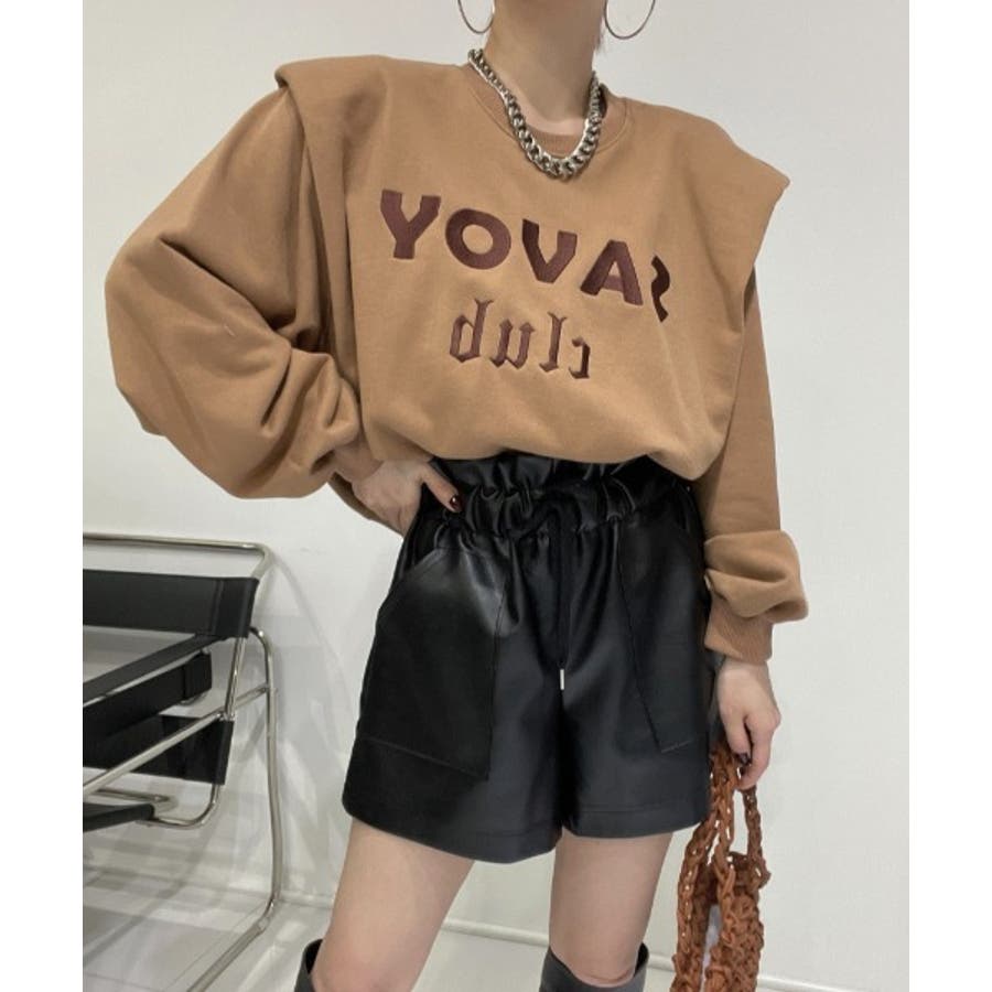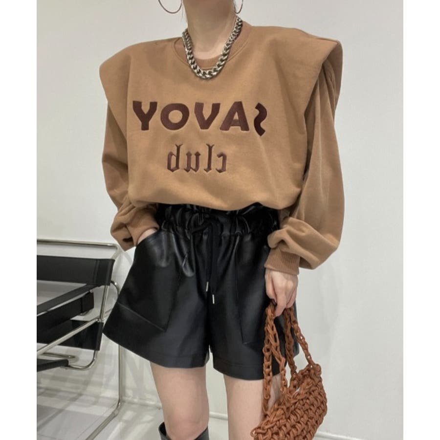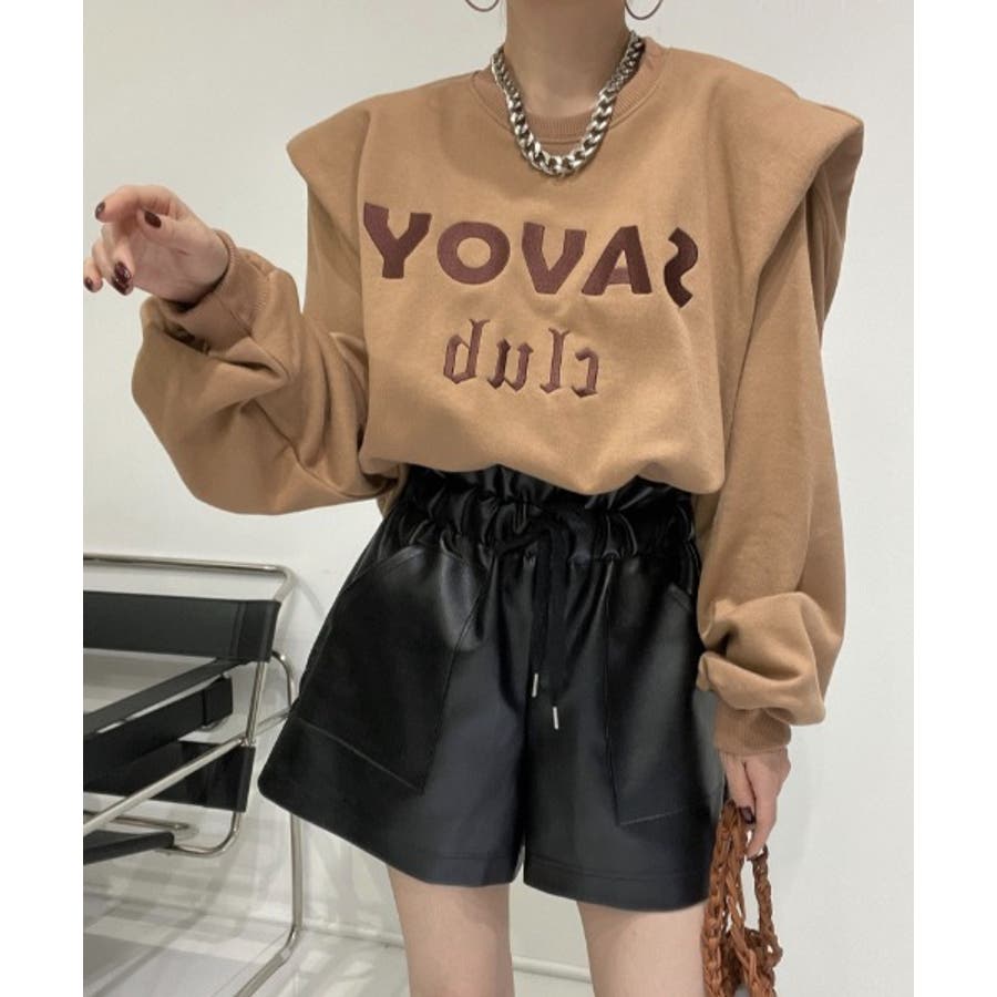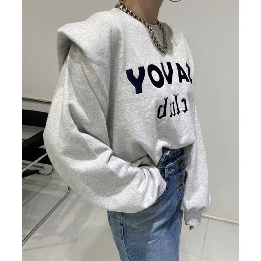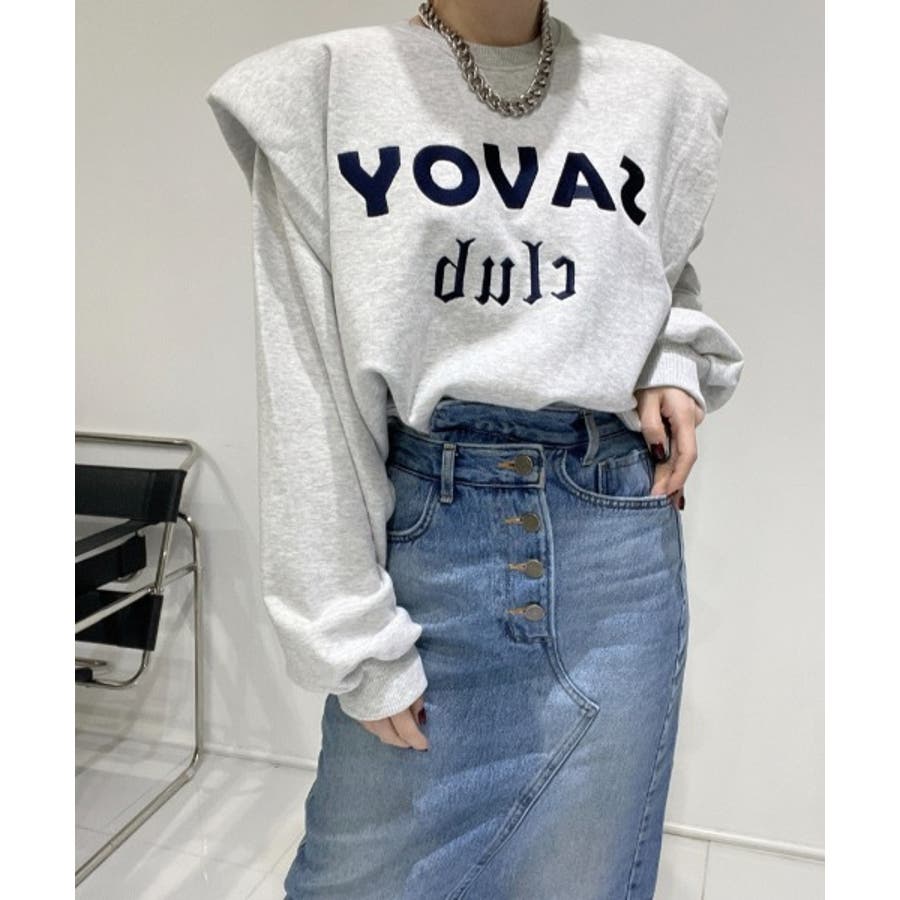 ロゴ刺繍ショルーフリル裏起毛トレーナー