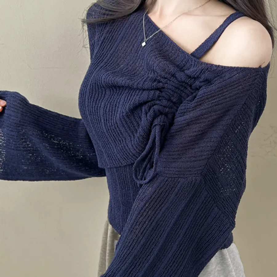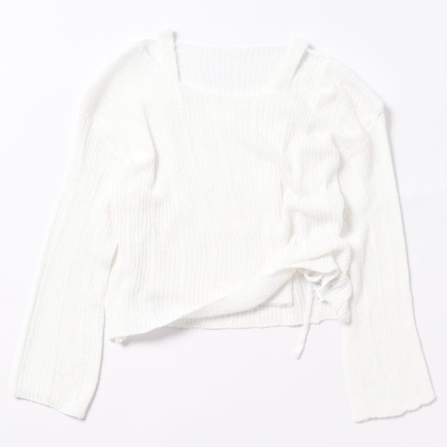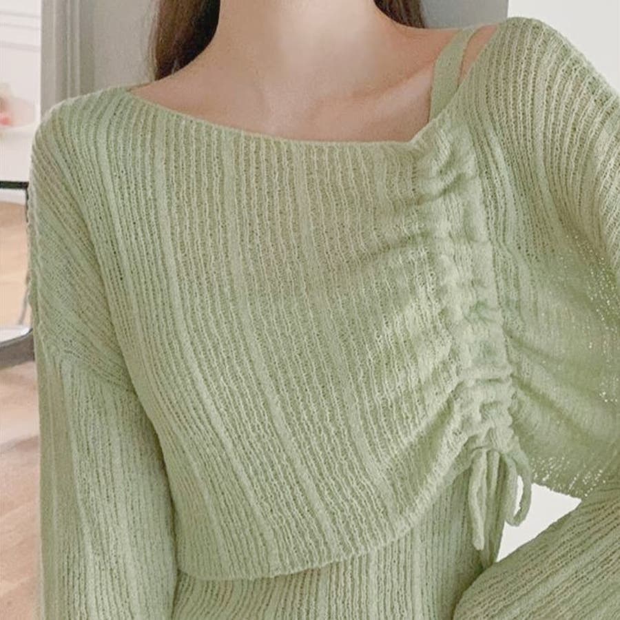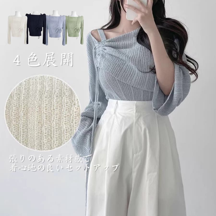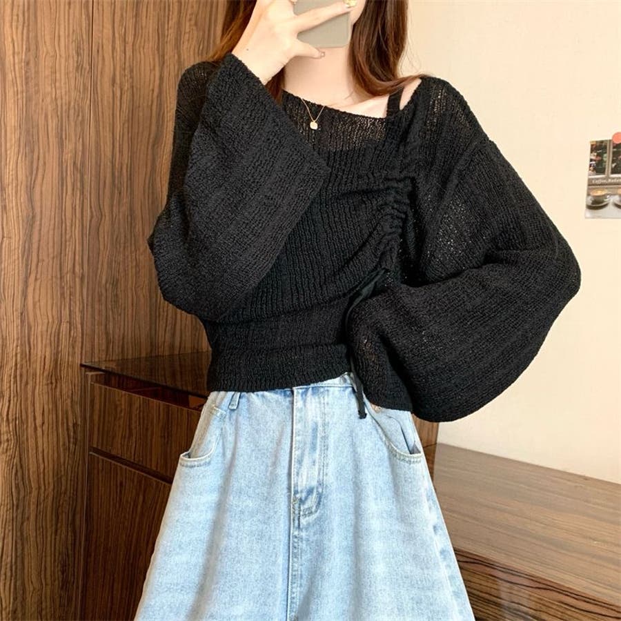 【アイボリー】ワンショルブークレニット&キャミソールSET
