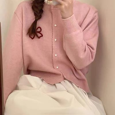 フロントリボン刺しゅうニットカーディガン