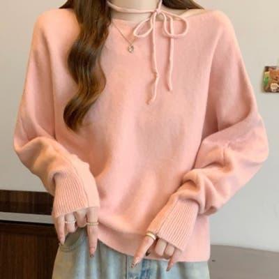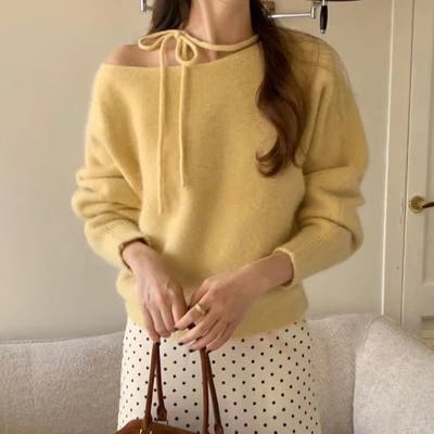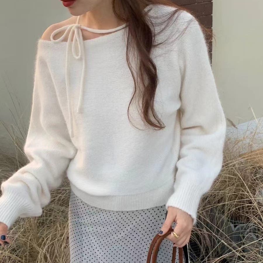 【アイボリー】オフショルダーカジュアルニットセーター