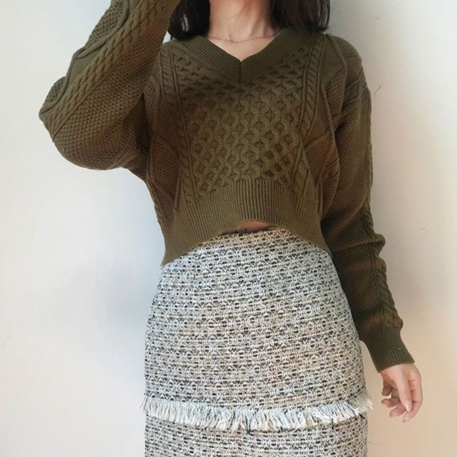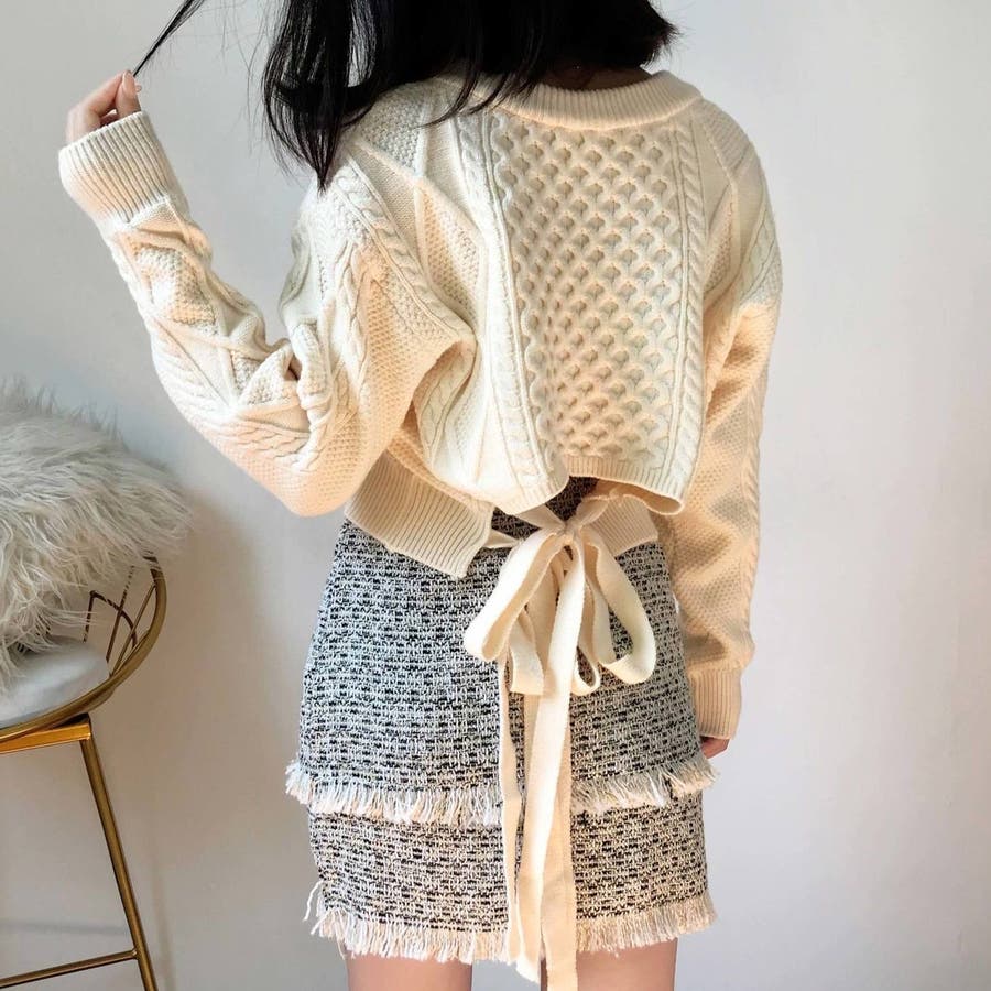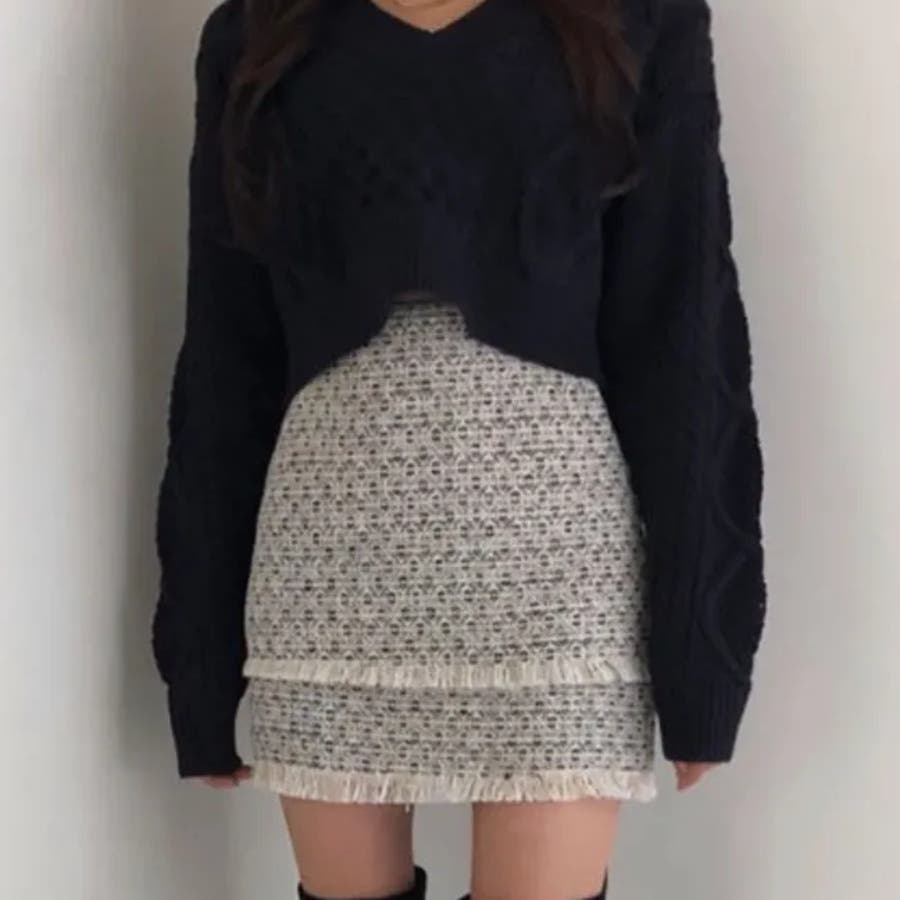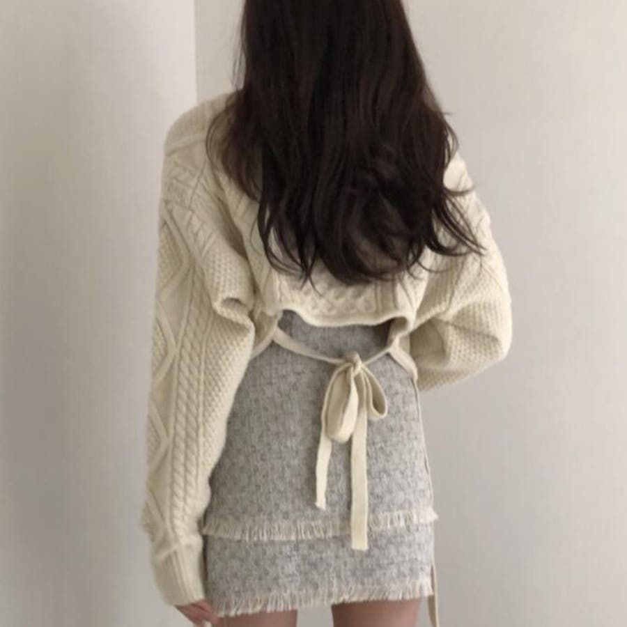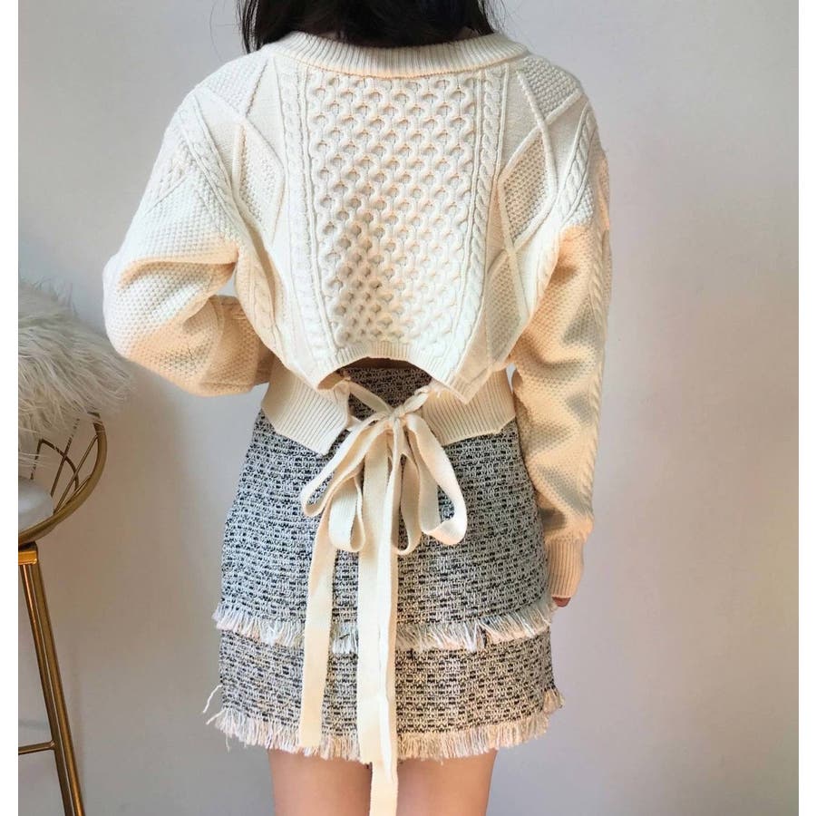 簡単にスタイルアップ可能なショート丈ニットトップス。