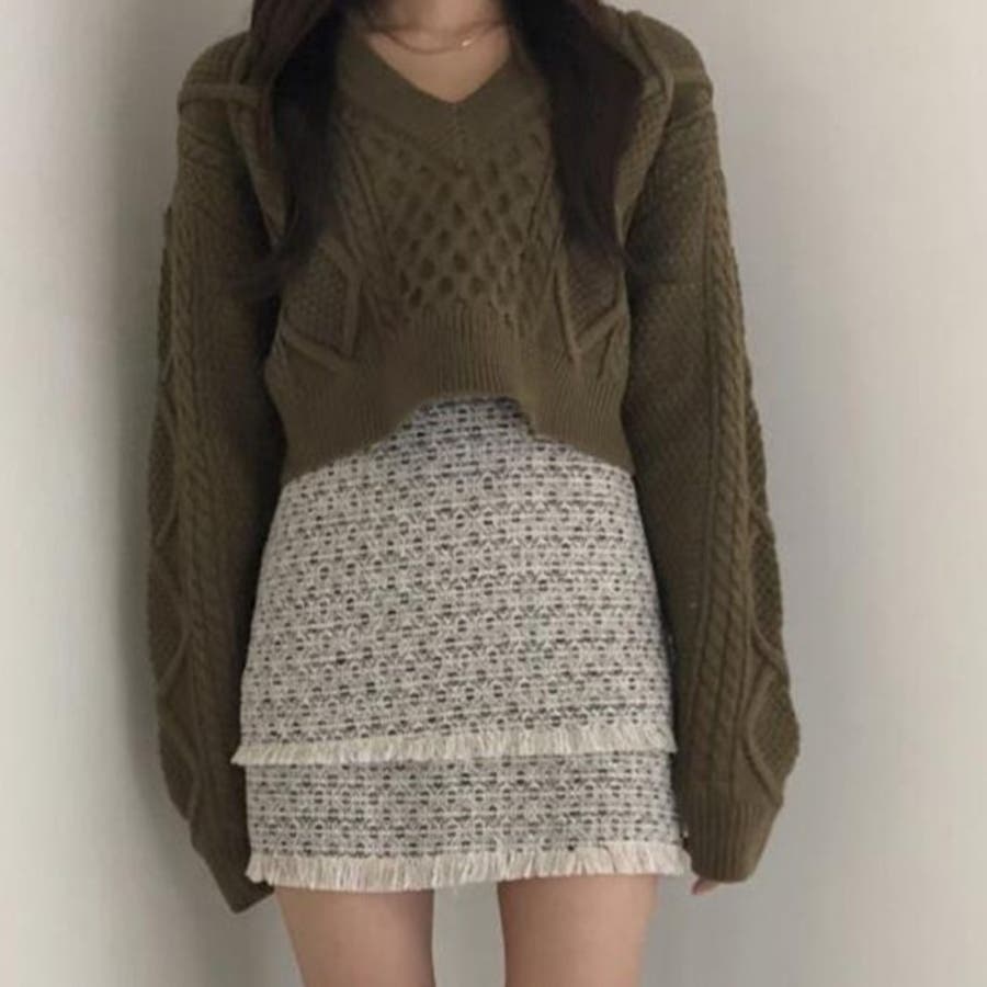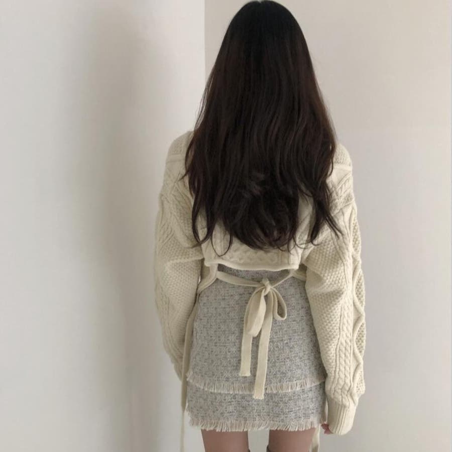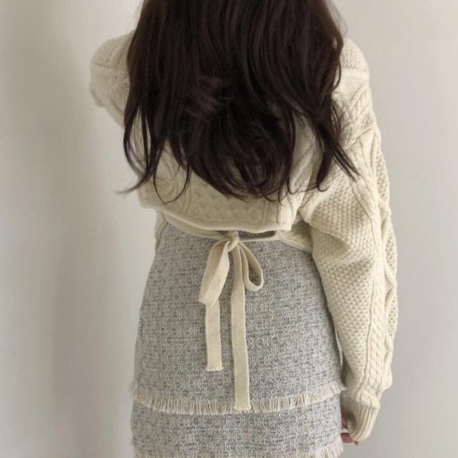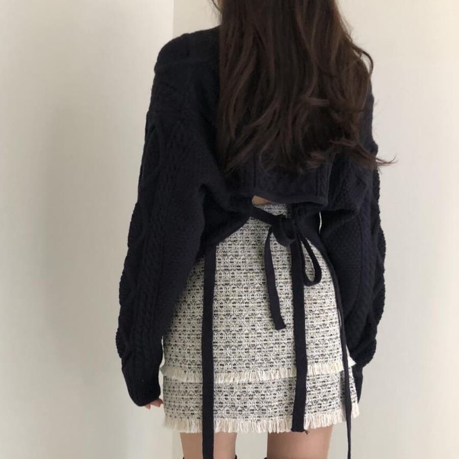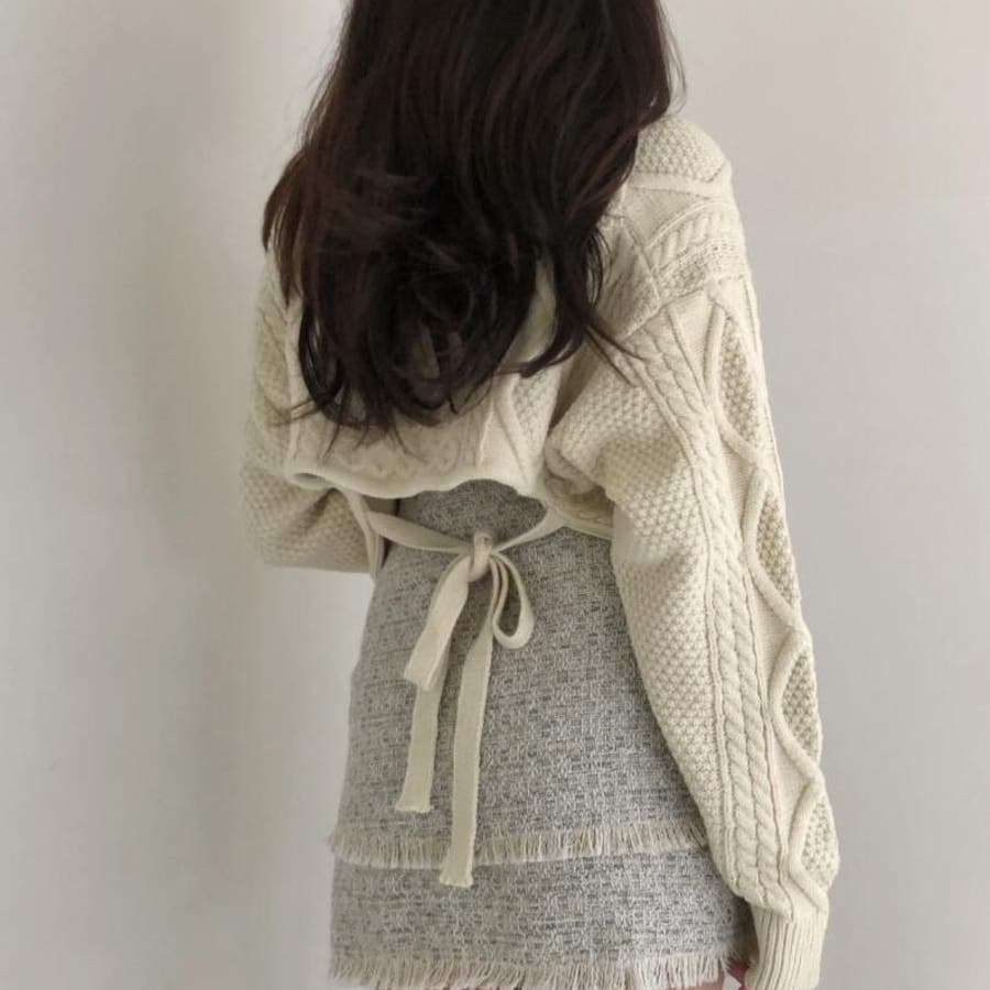 簡単にスタイルアップ可能なショート丈ニットトップス。