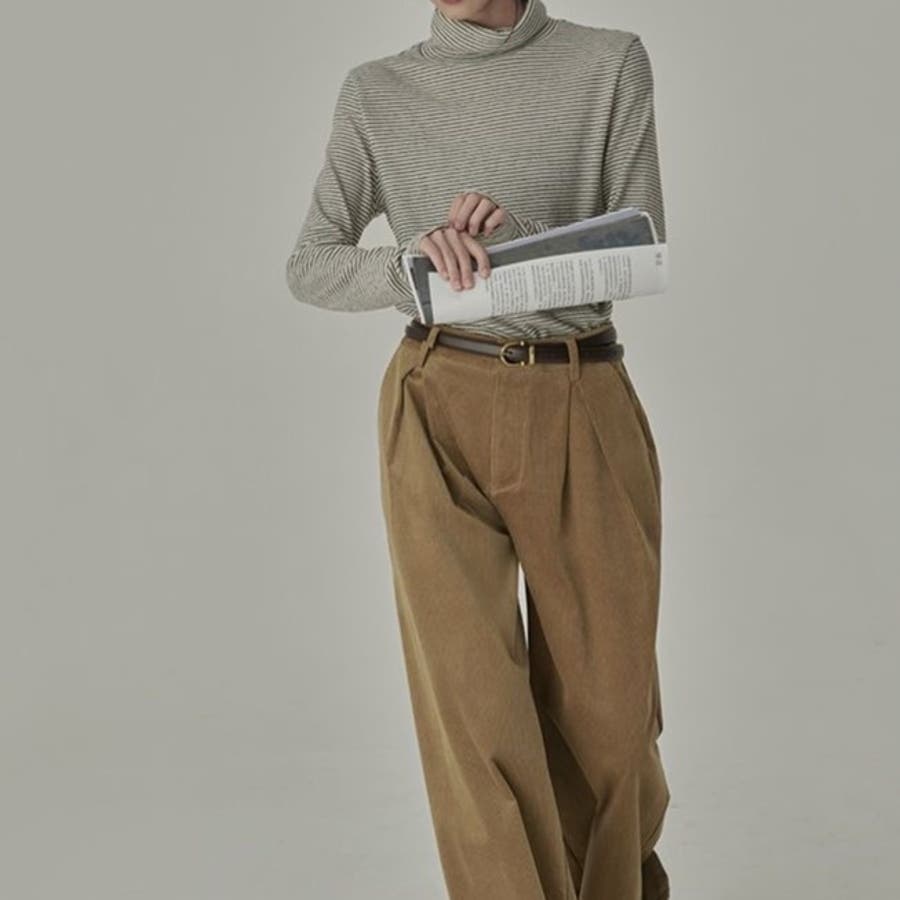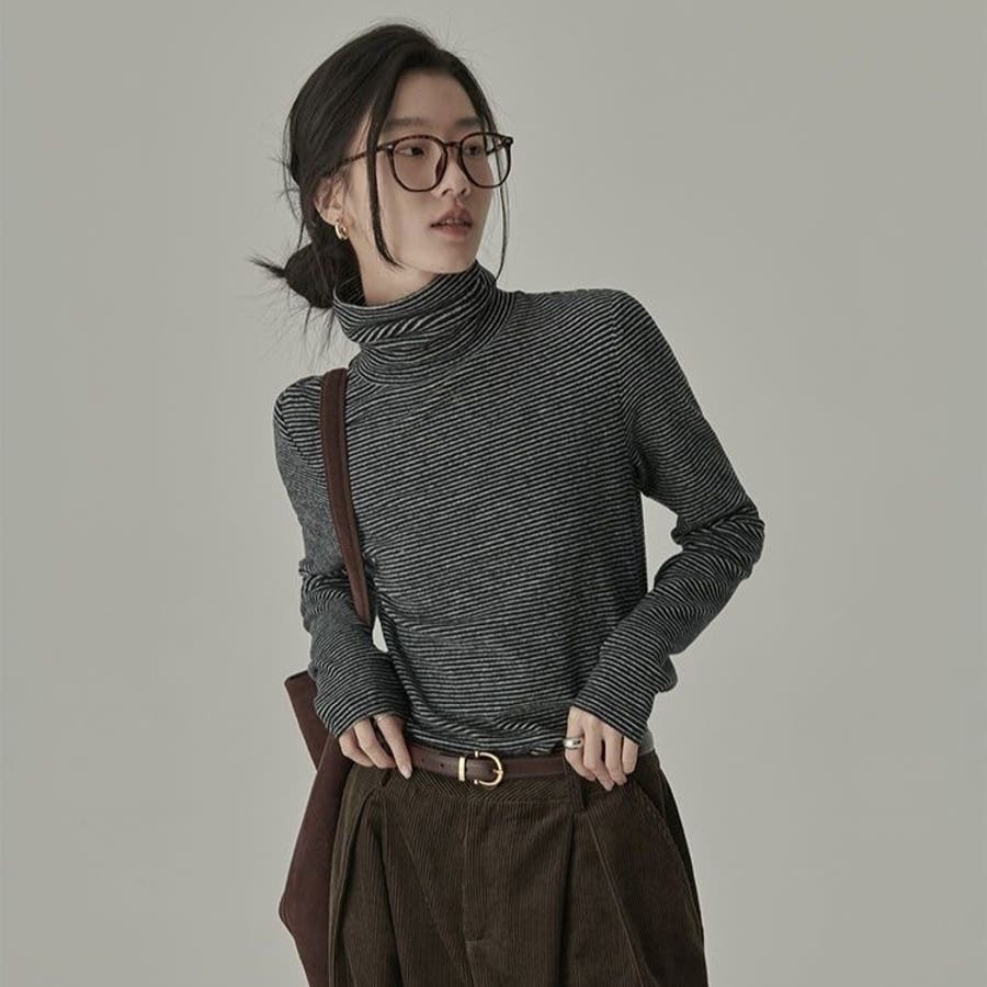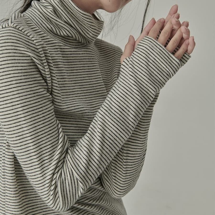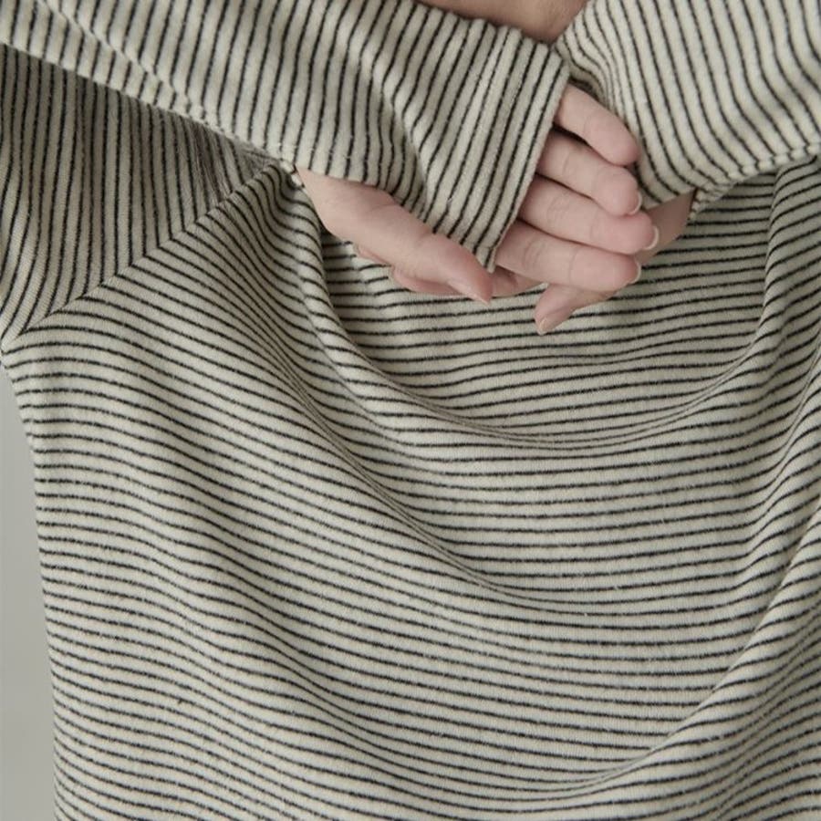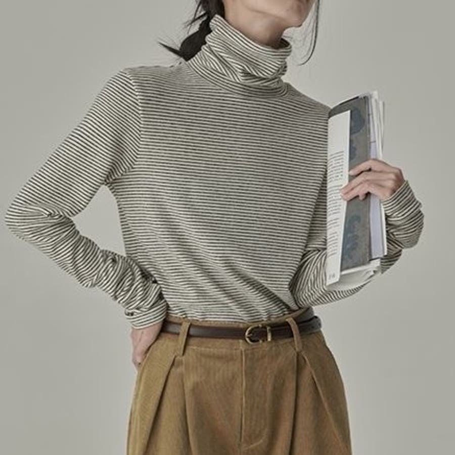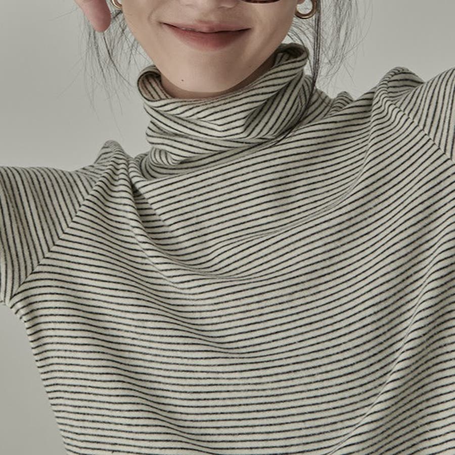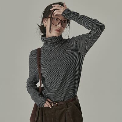 ストライプ柄 タートルネックカットソー