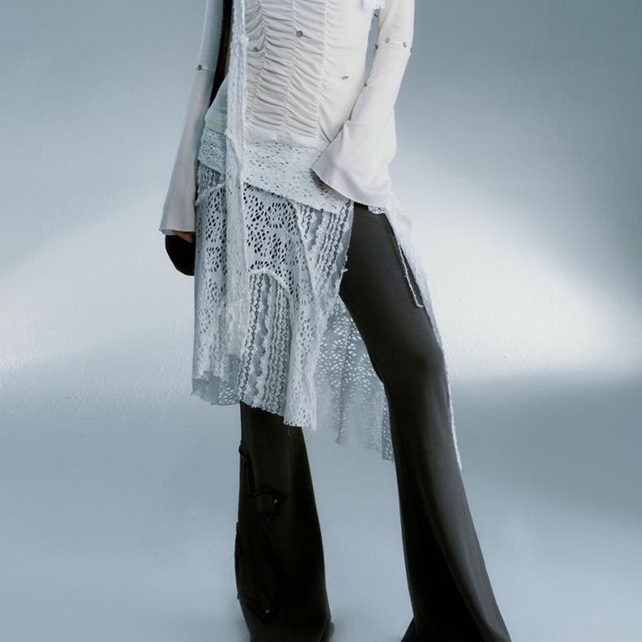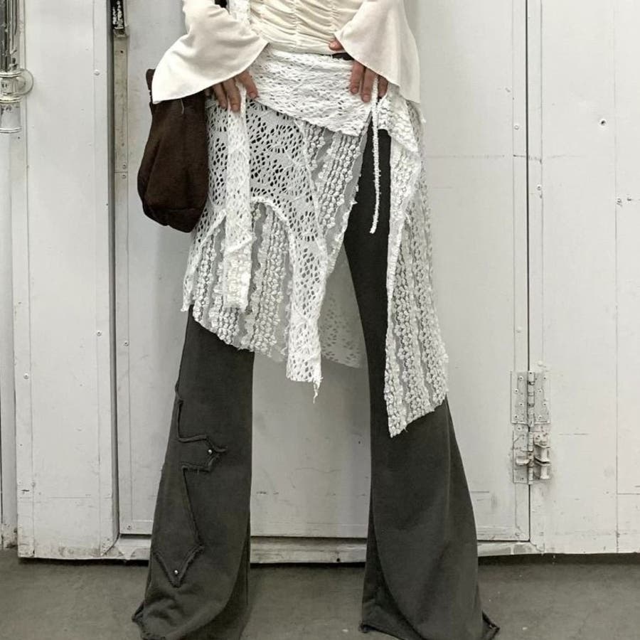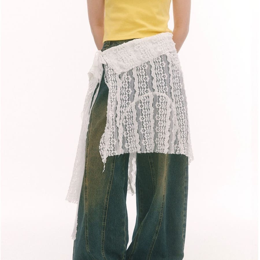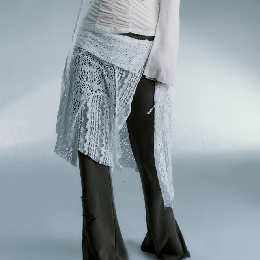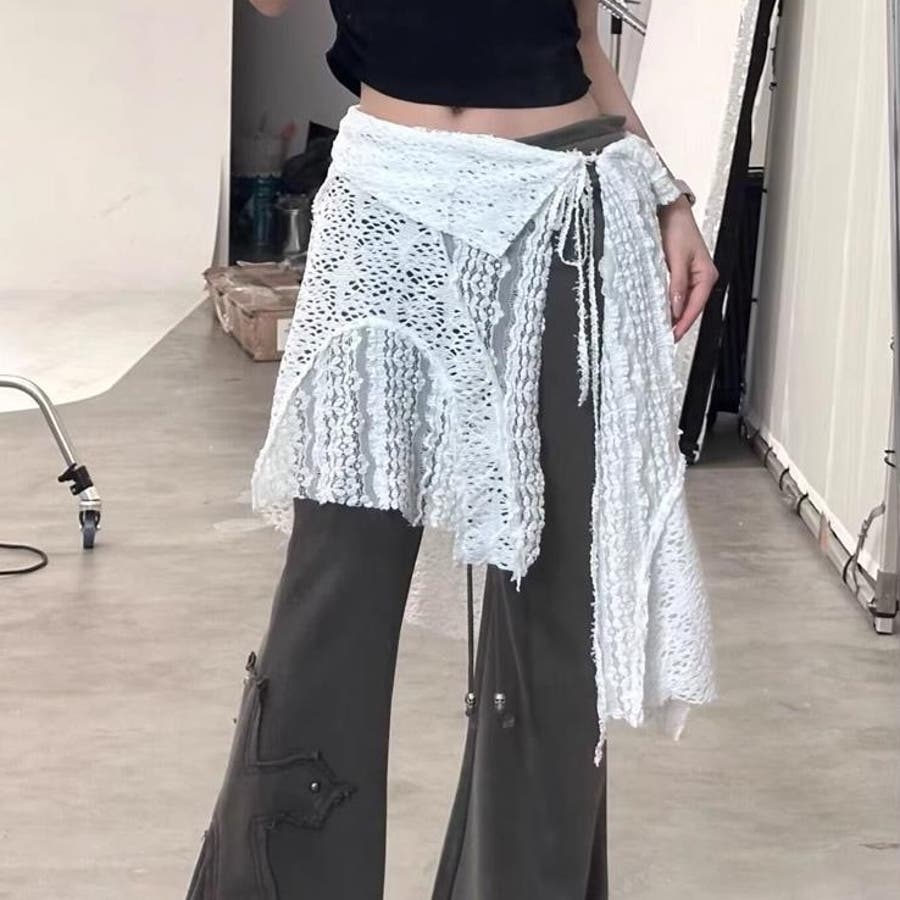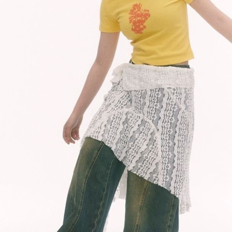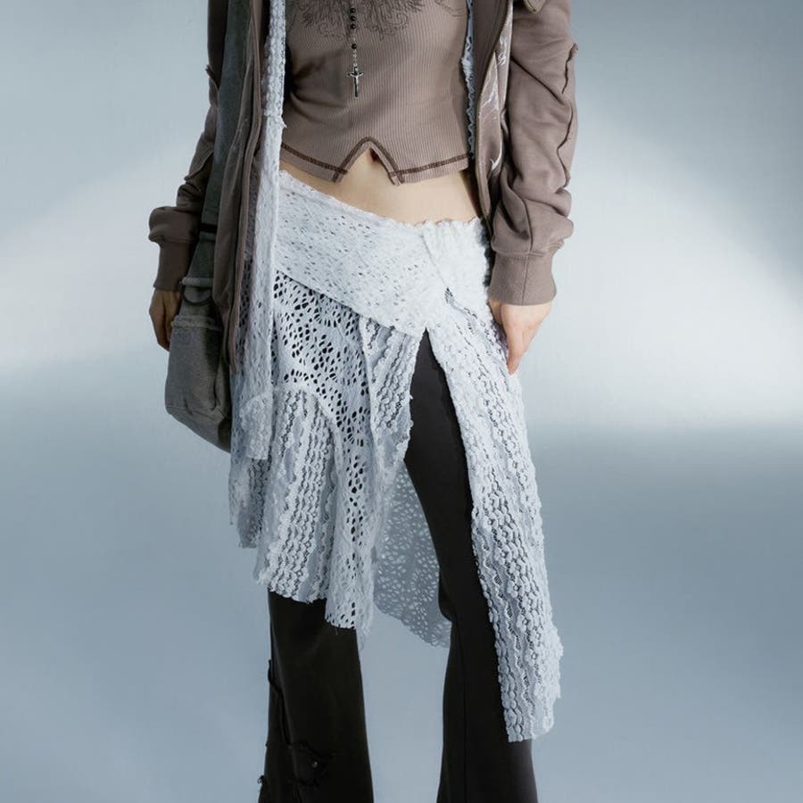 レース非対称巻きスカート 重ね着