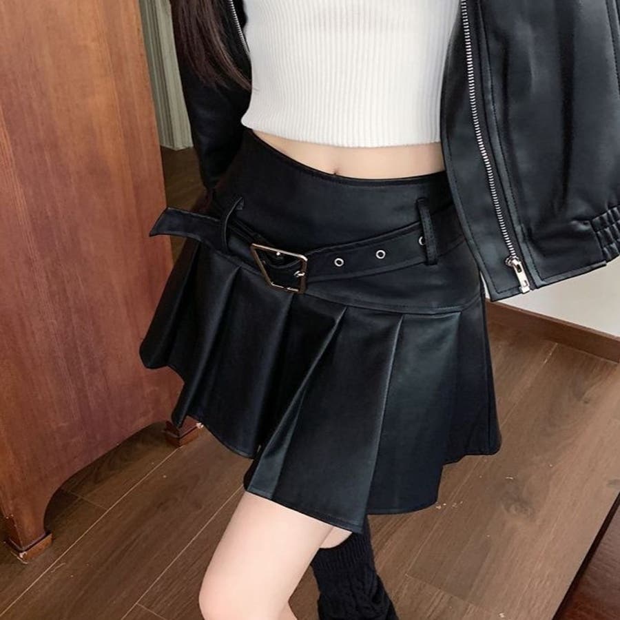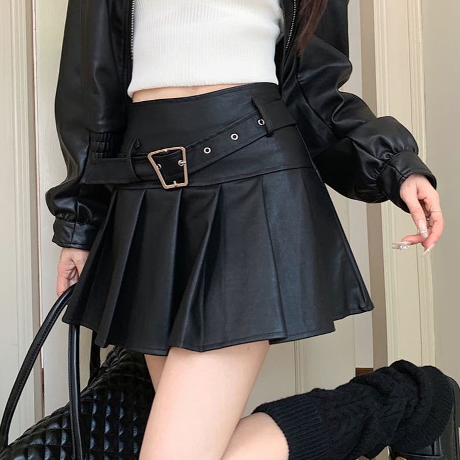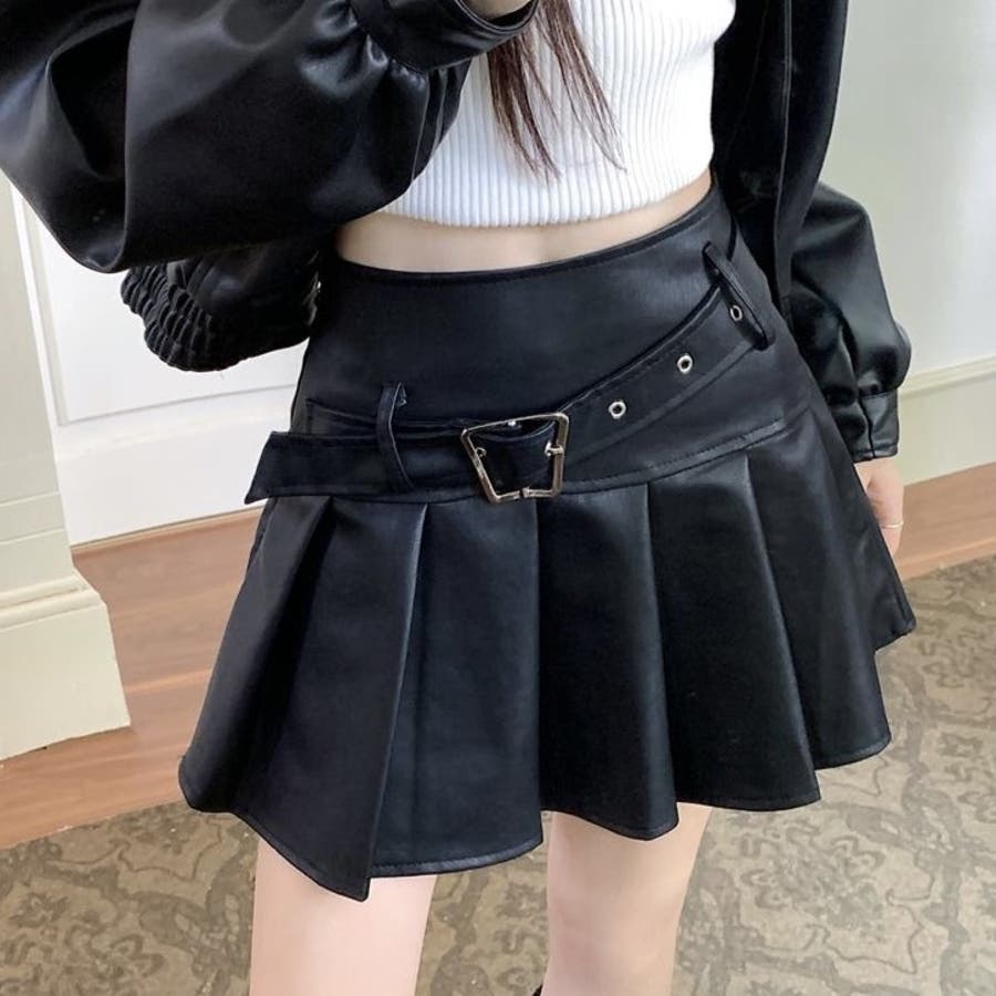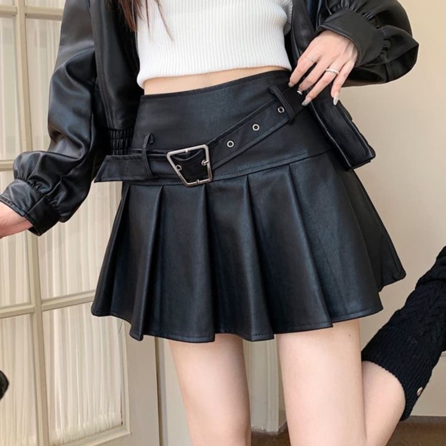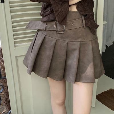 秋冬定番のフェイクレザースカート。ロングブーツやタイツと相性抜群