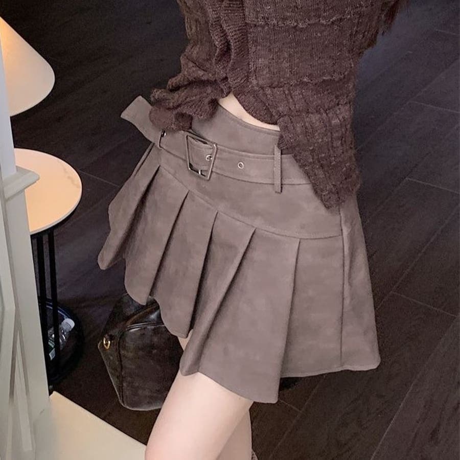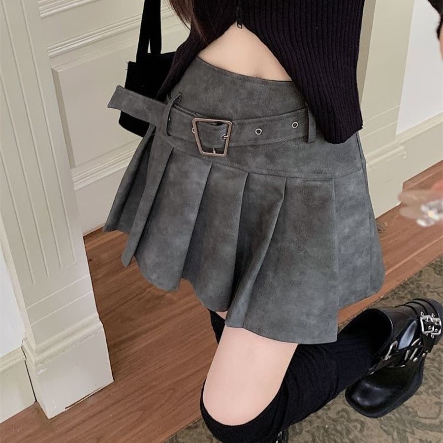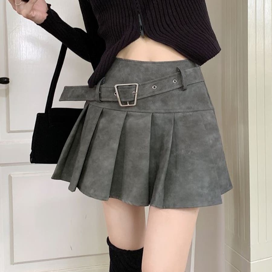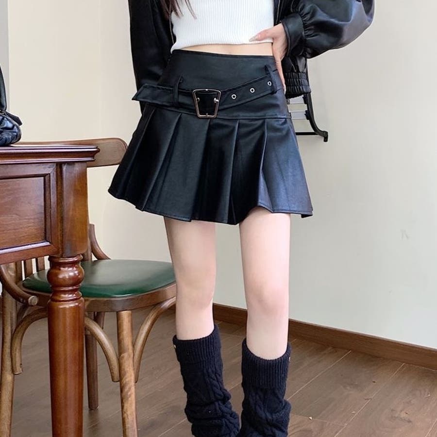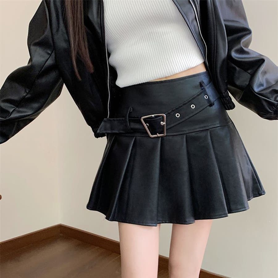 秋冬定番のフェイクレザースカート。ロングブーツやタイツと相性抜群