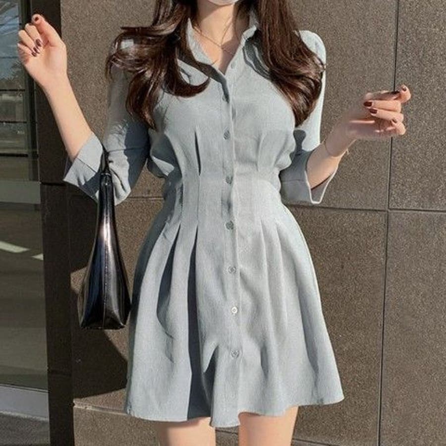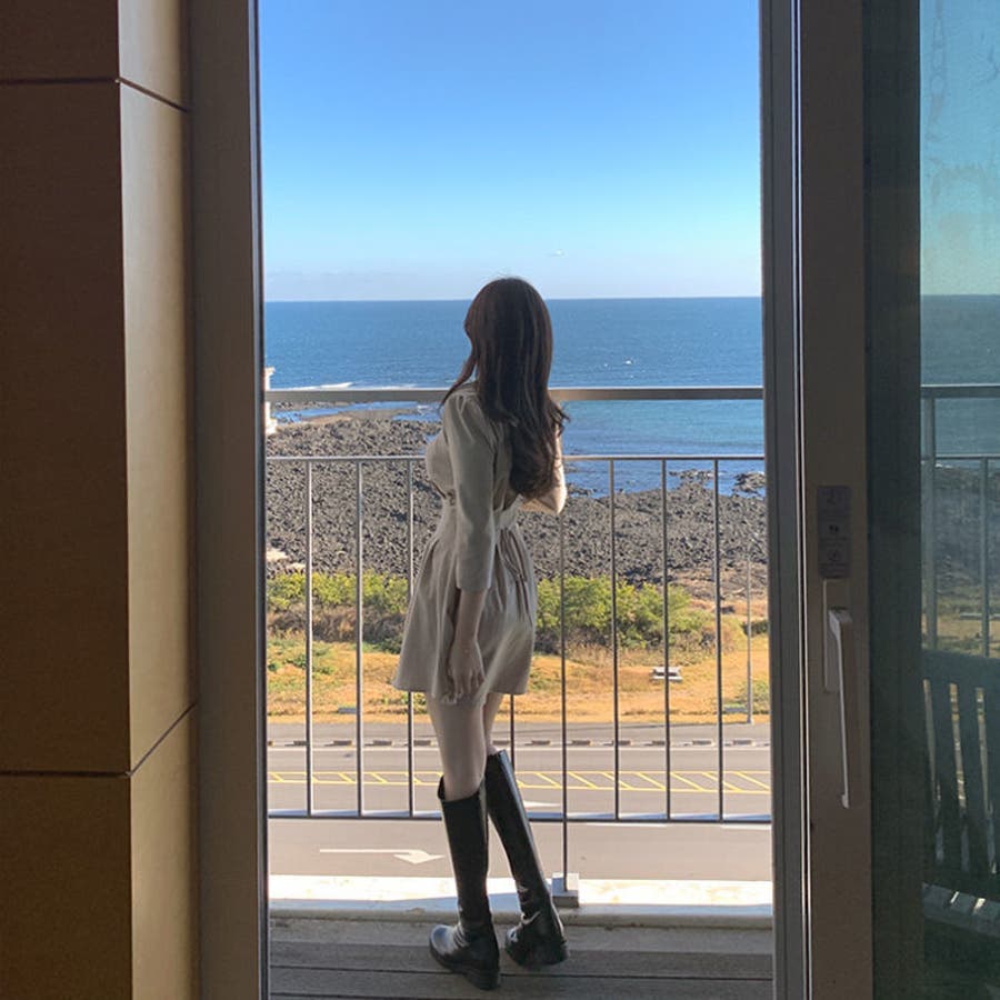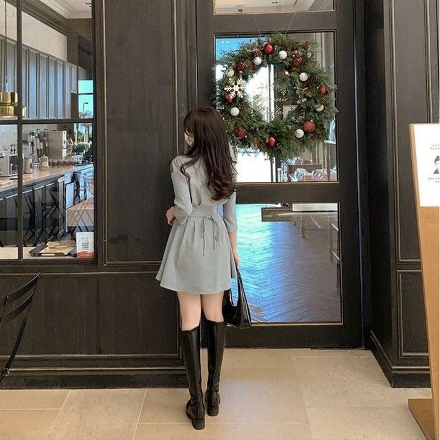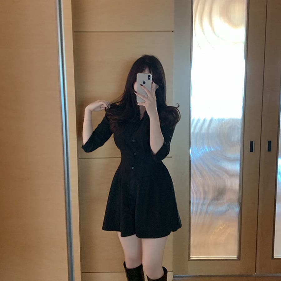 シルエットがめちゃくちゃ可愛いです。生地も割と厚めの素材で春秋しっかり着れそうです。丈が結構短めなのでインナーパンツは必須です。