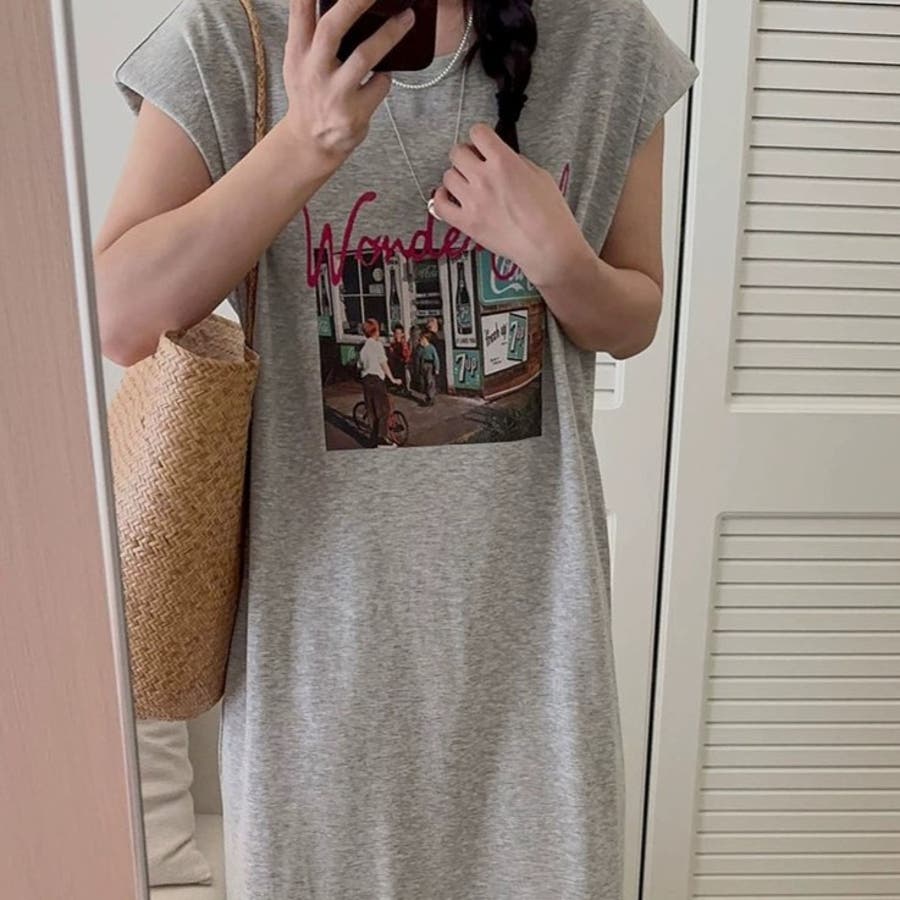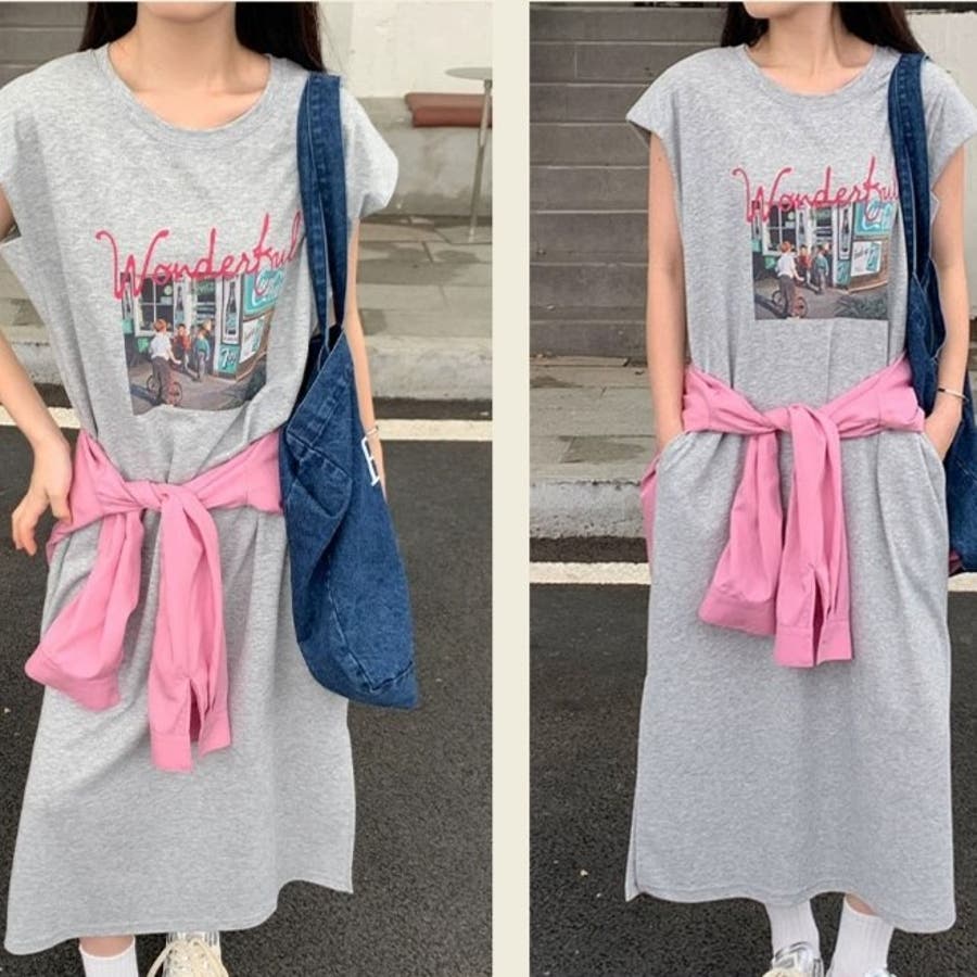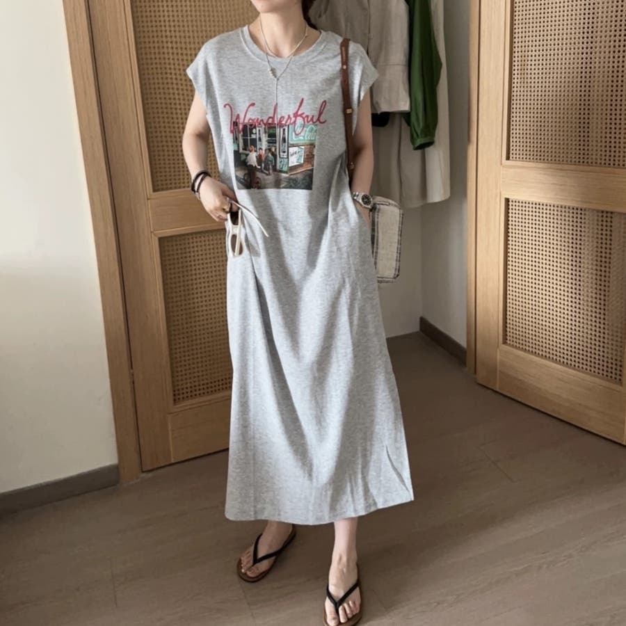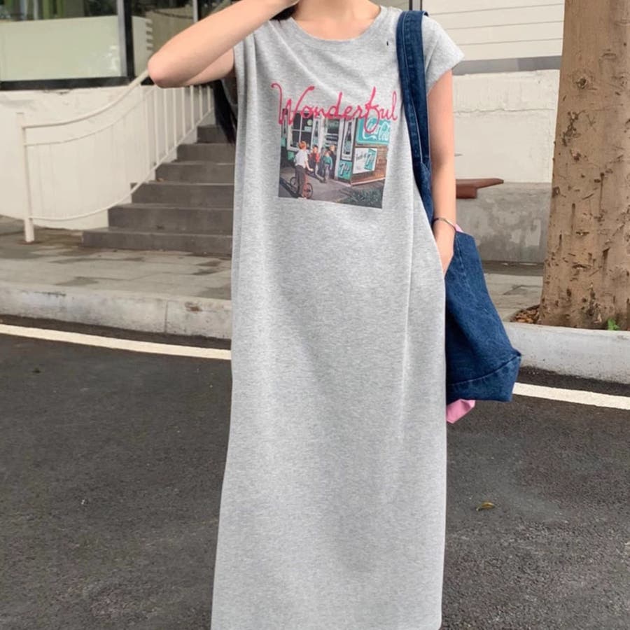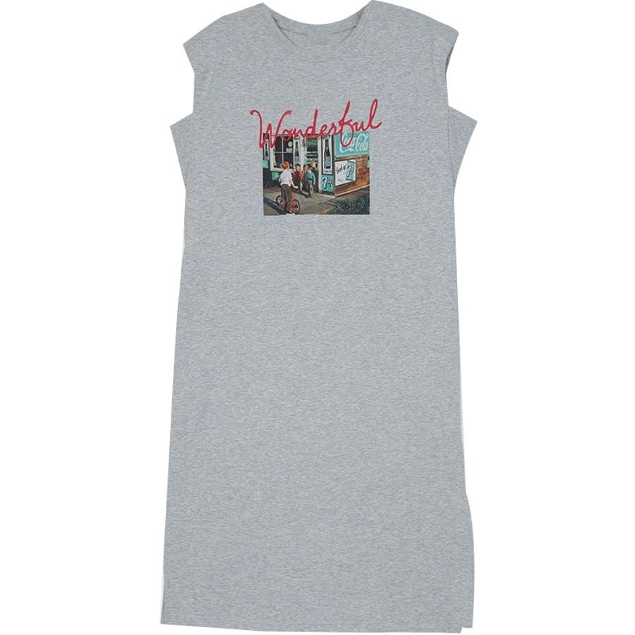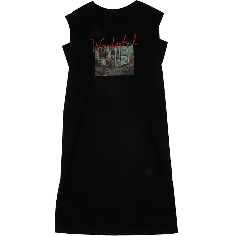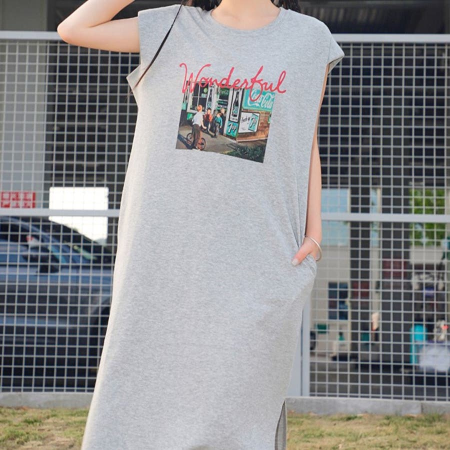 フロントのプリントがポイントのプリントTシャツワンピース。