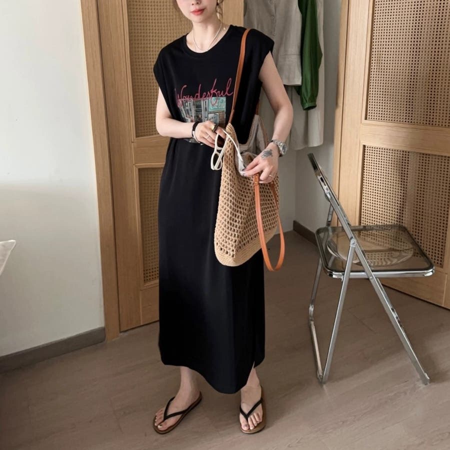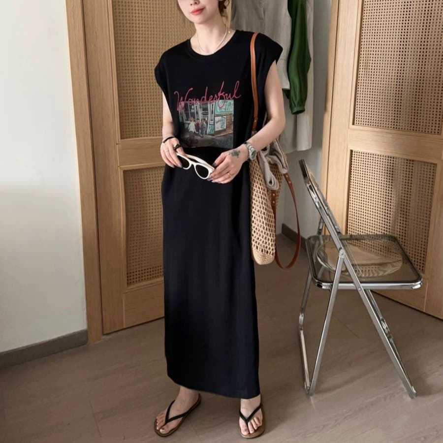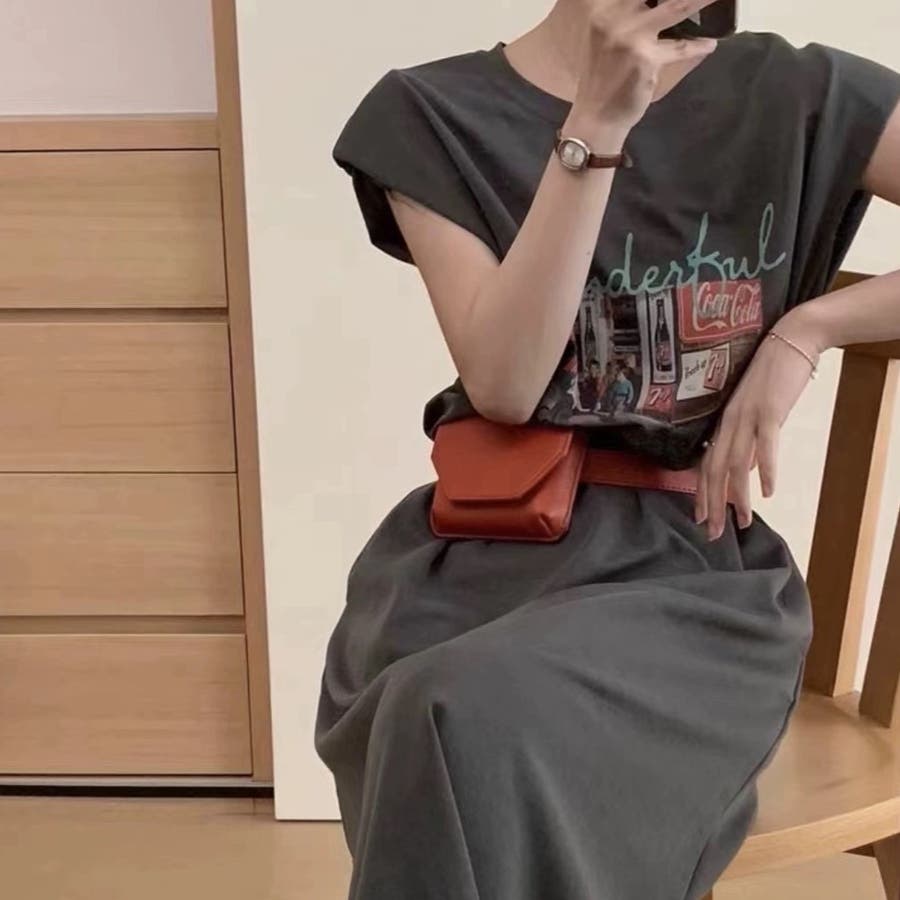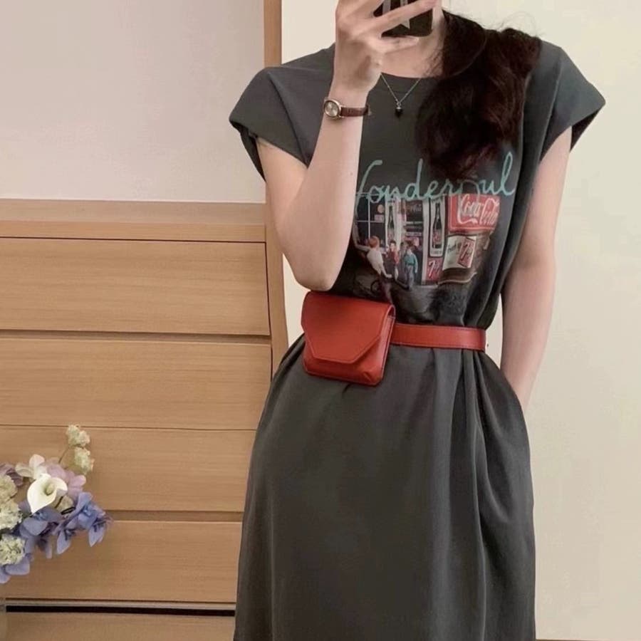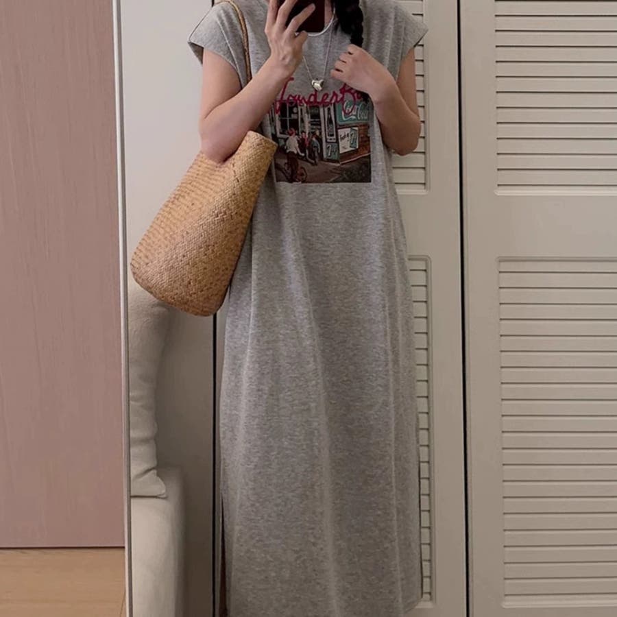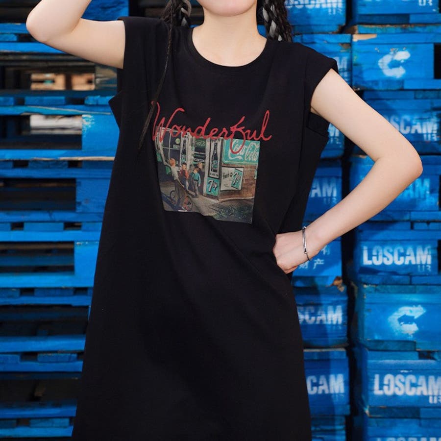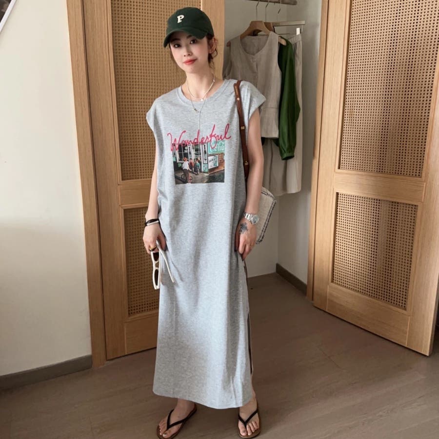 フロントのプリントがポイントのプリントTシャツワンピース。