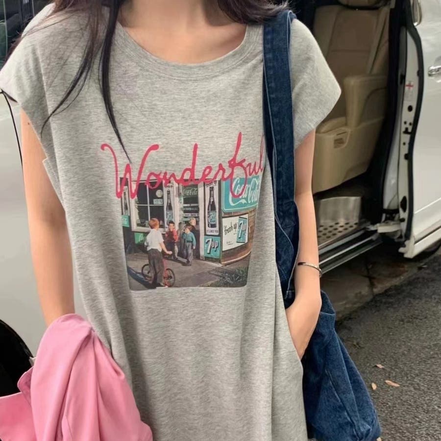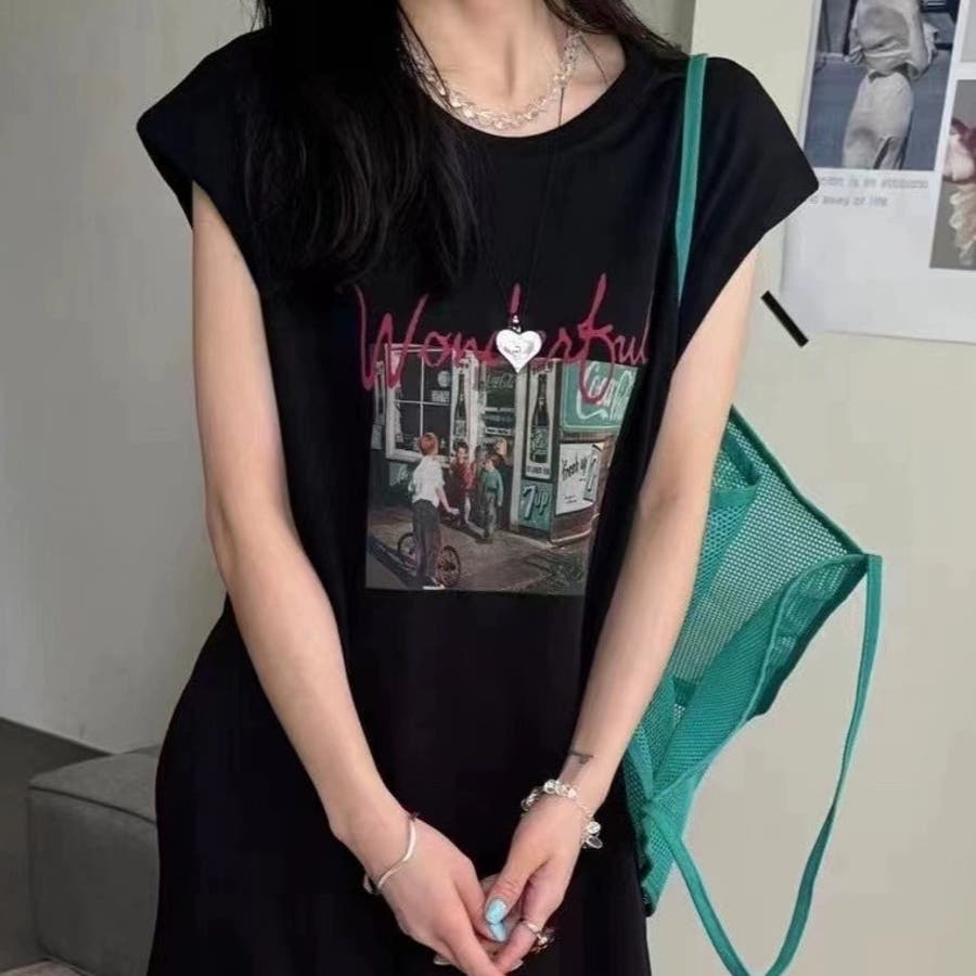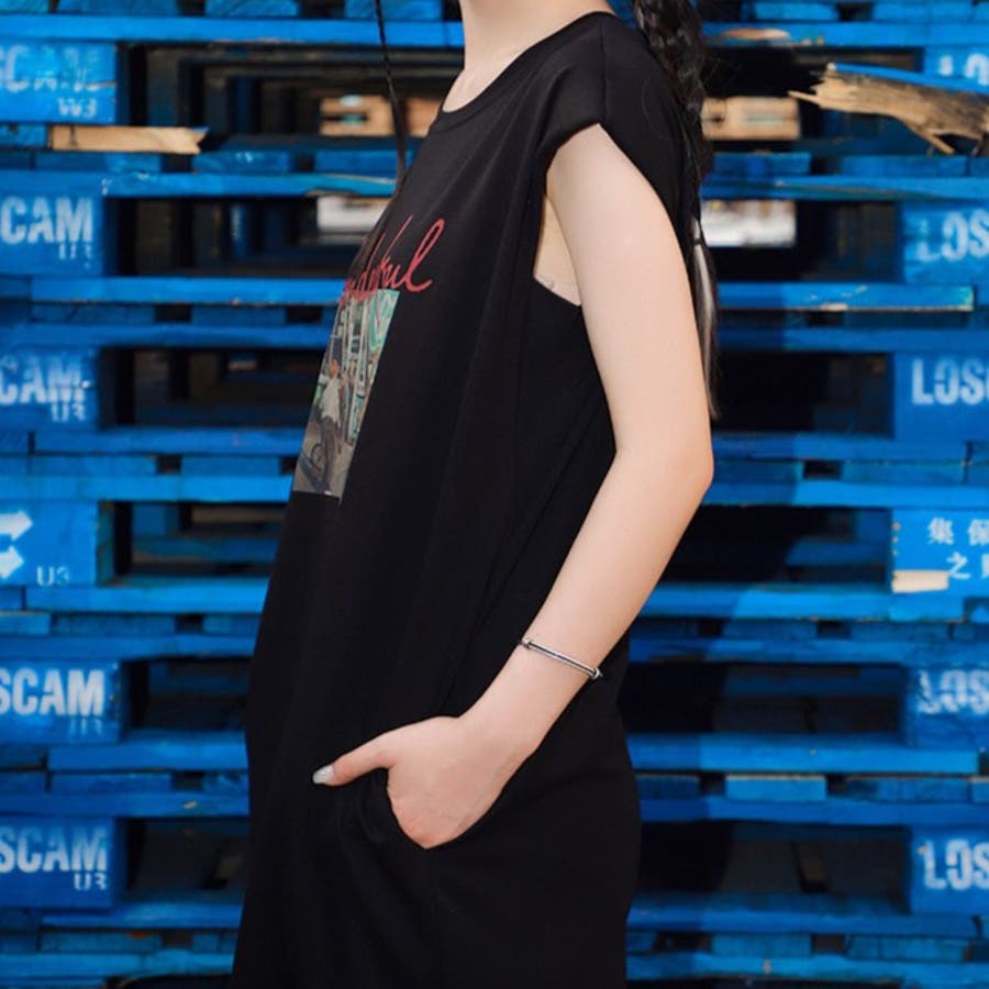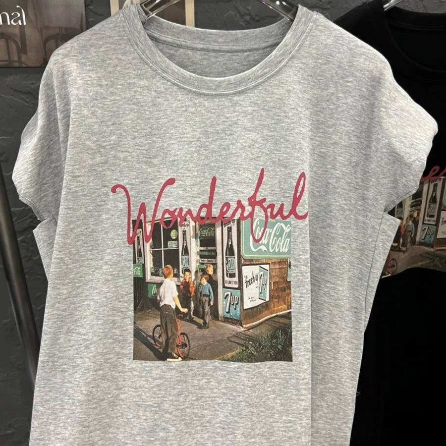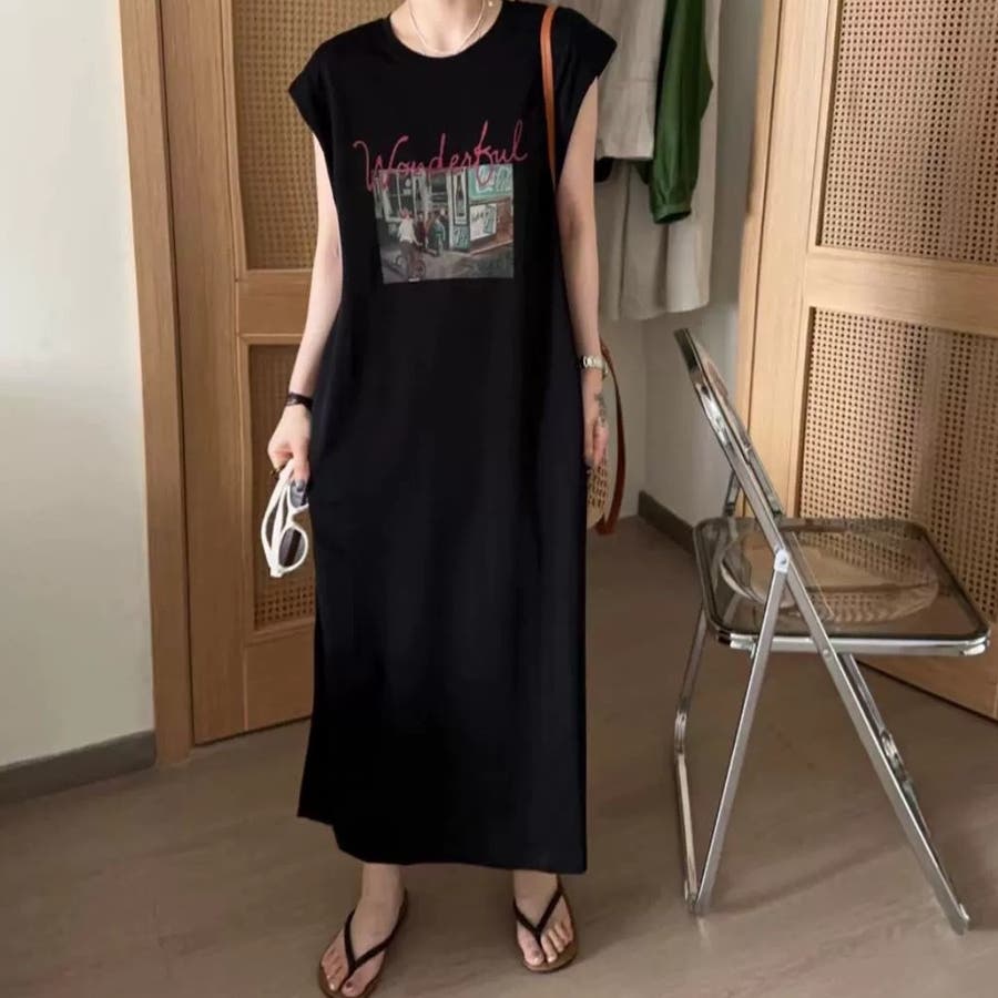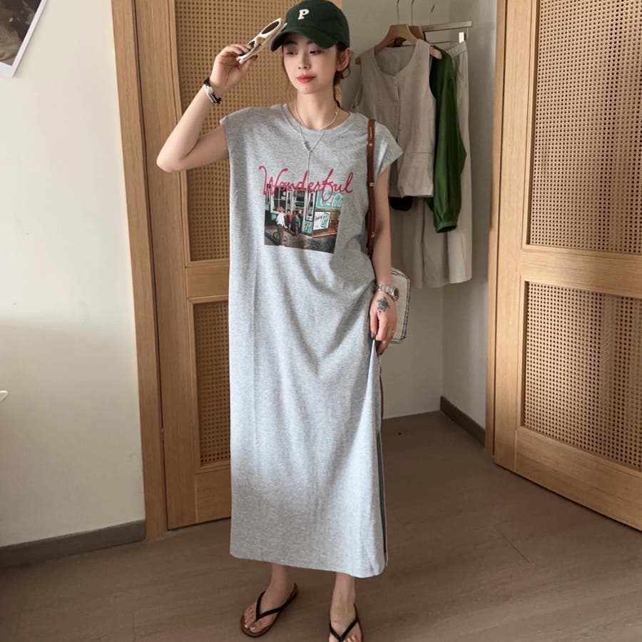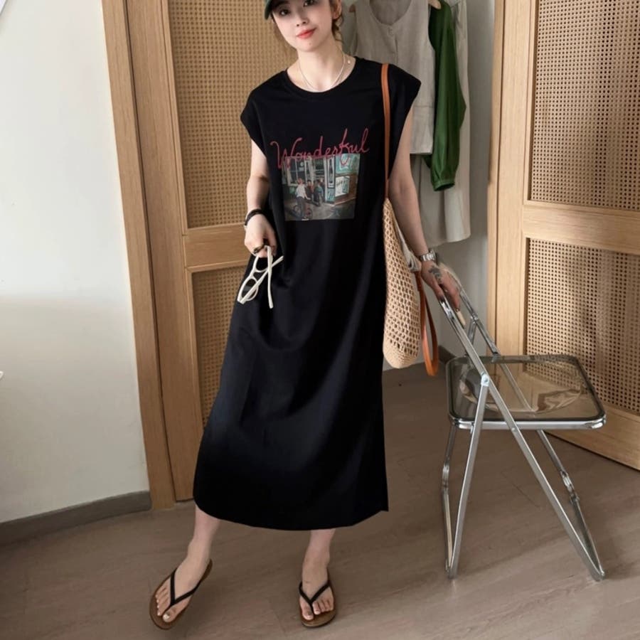 フロントのプリントがポイントのプリントTシャツワンピース。