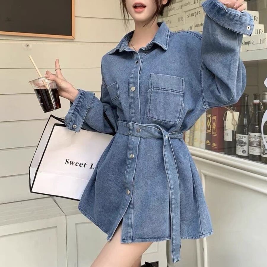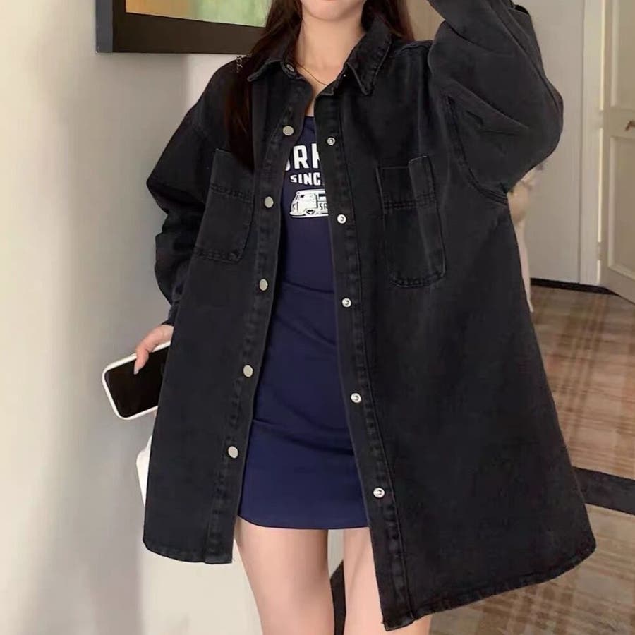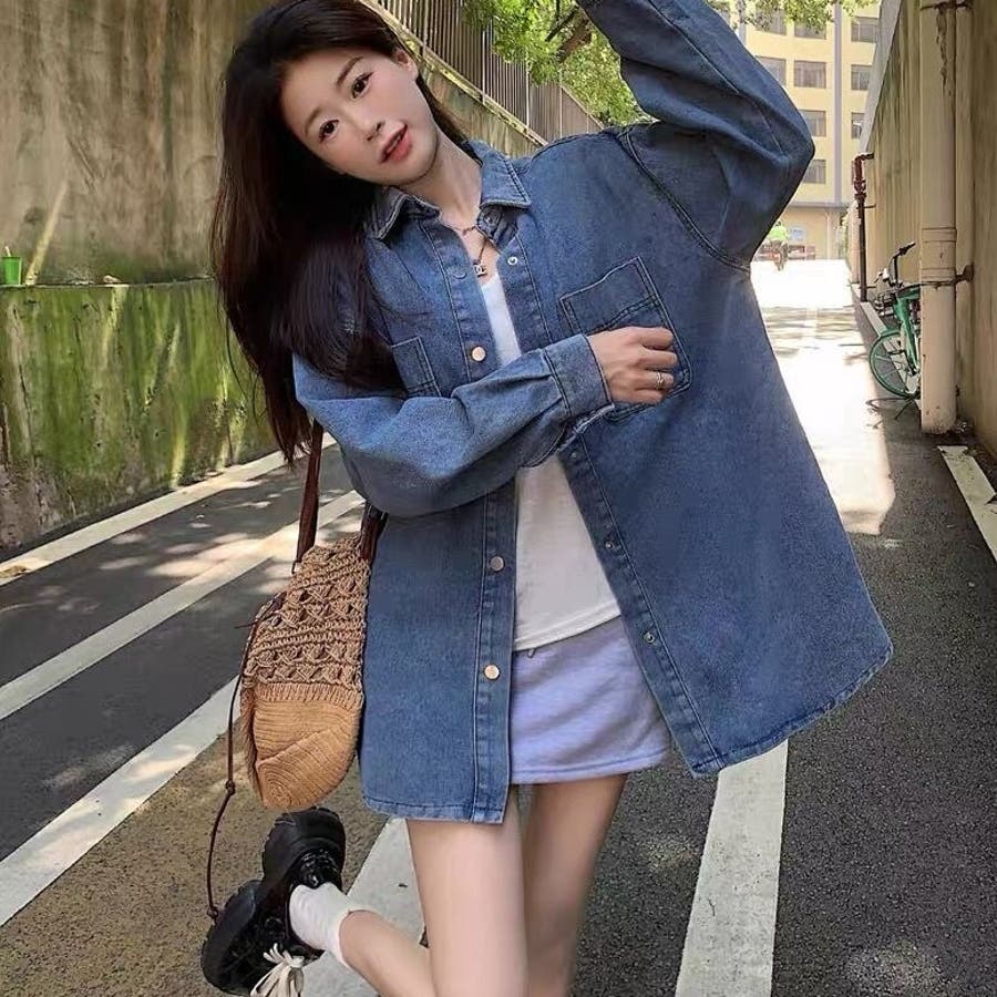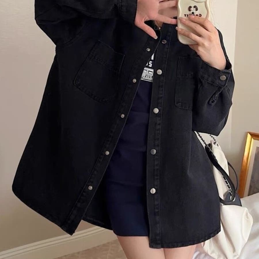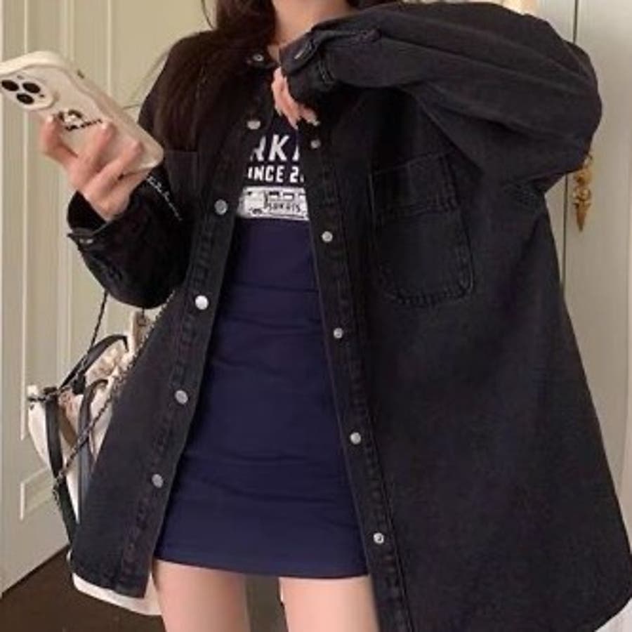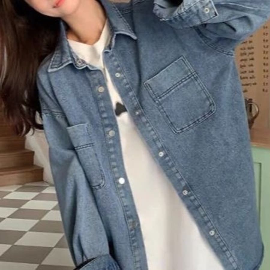ゆったりとしたデニムシャツジャケットをジャケットとして、