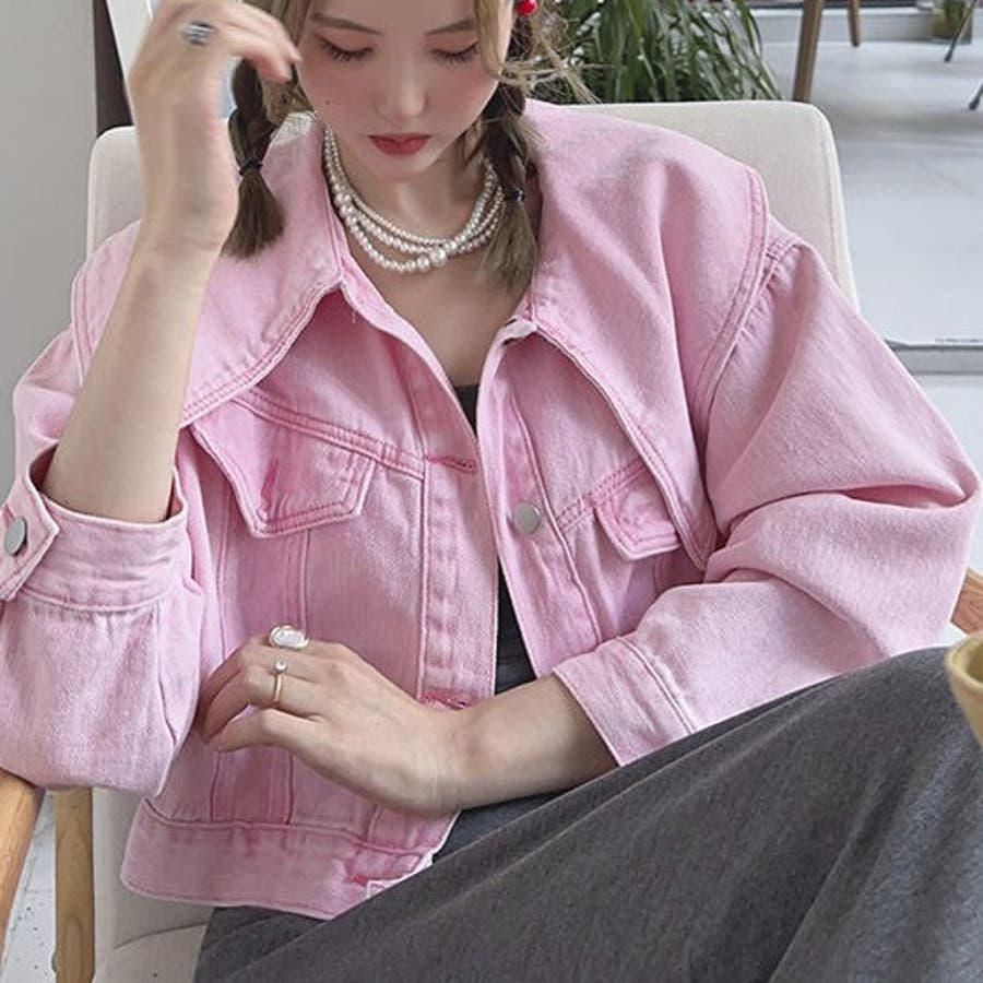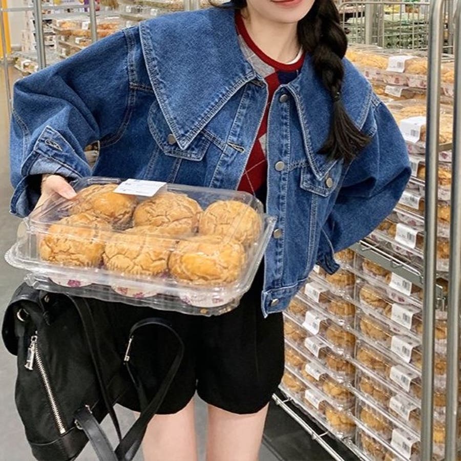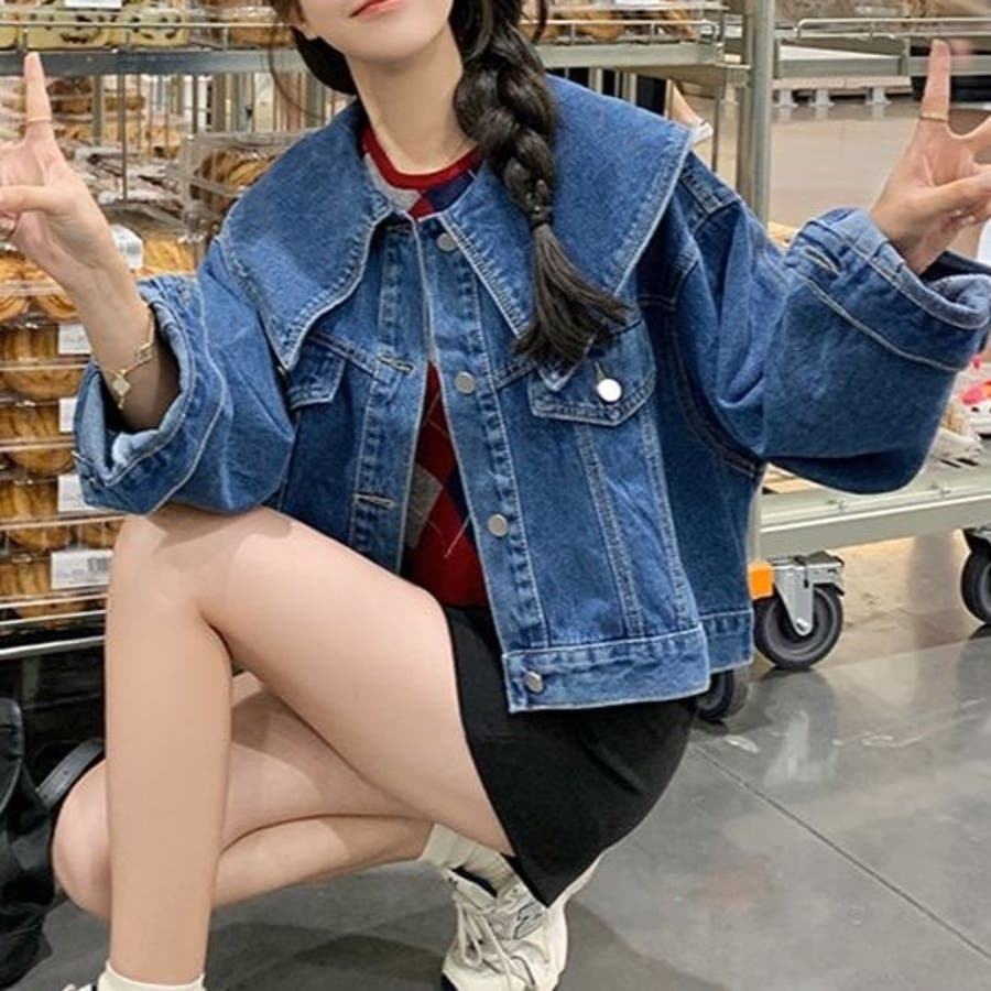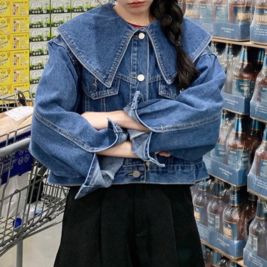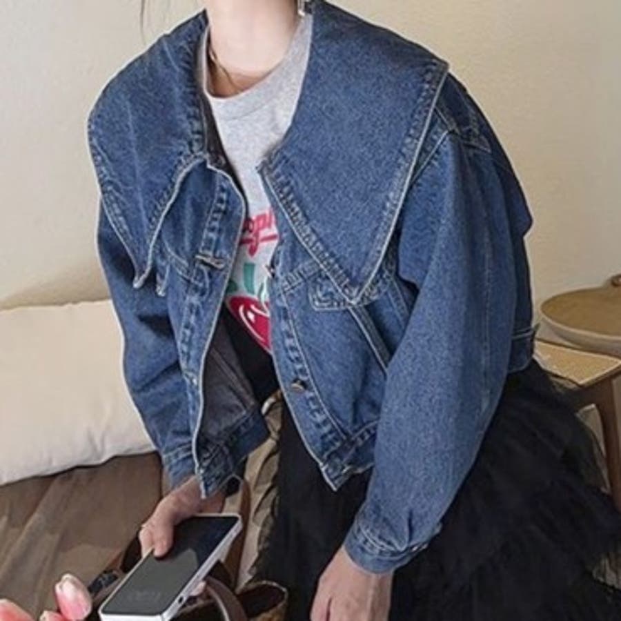 ビックカラー デニムジャケットカジュアルになりすぎず、