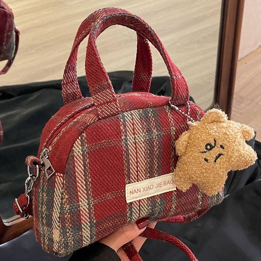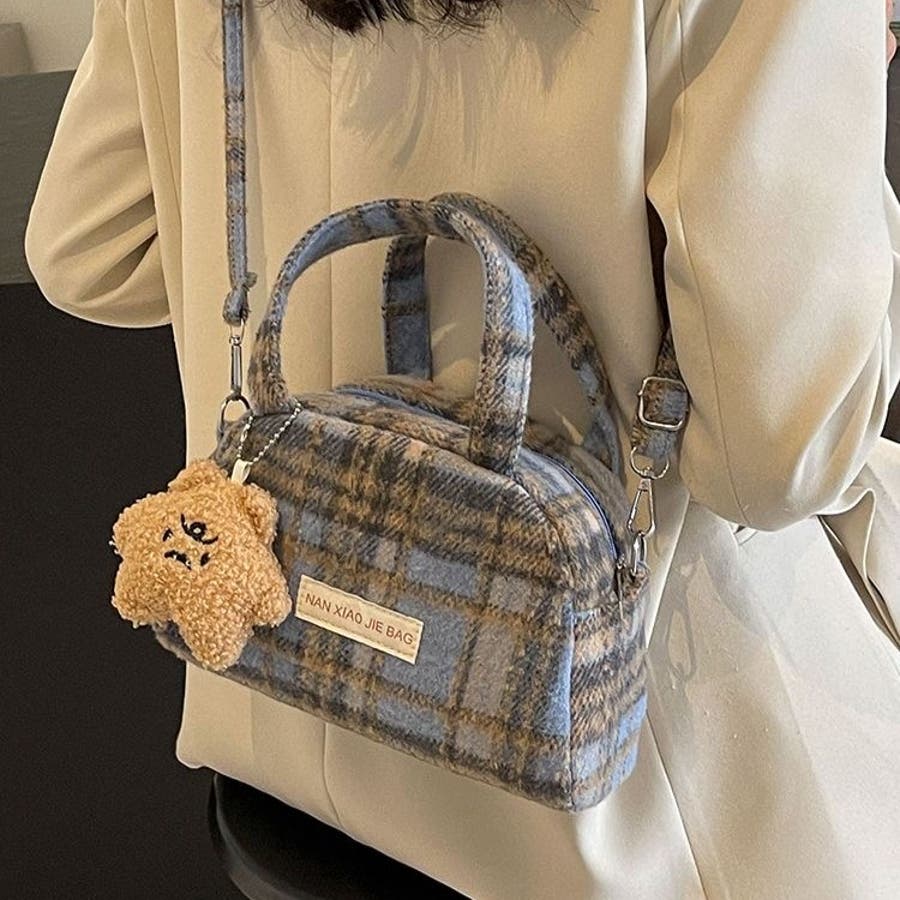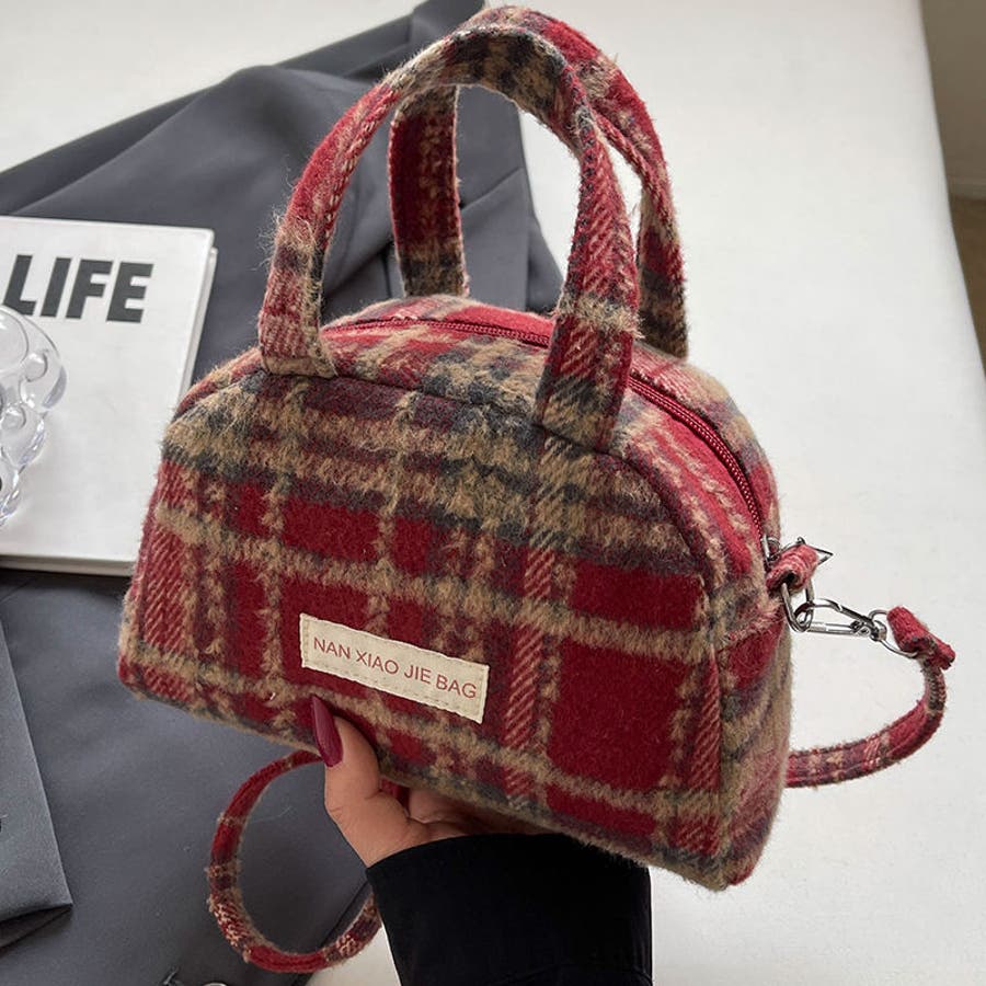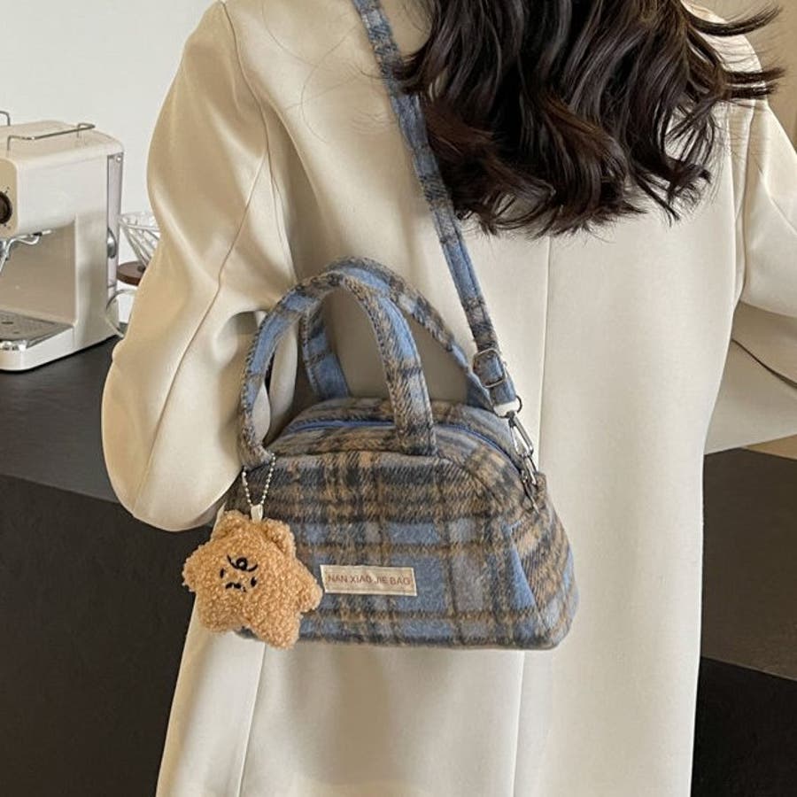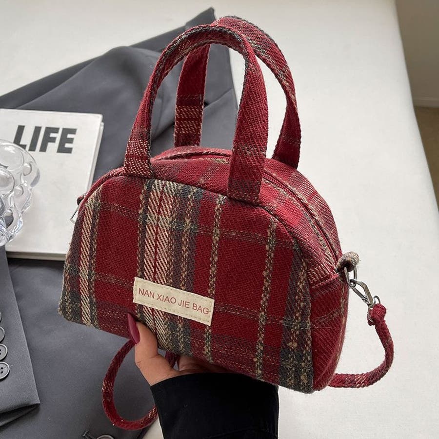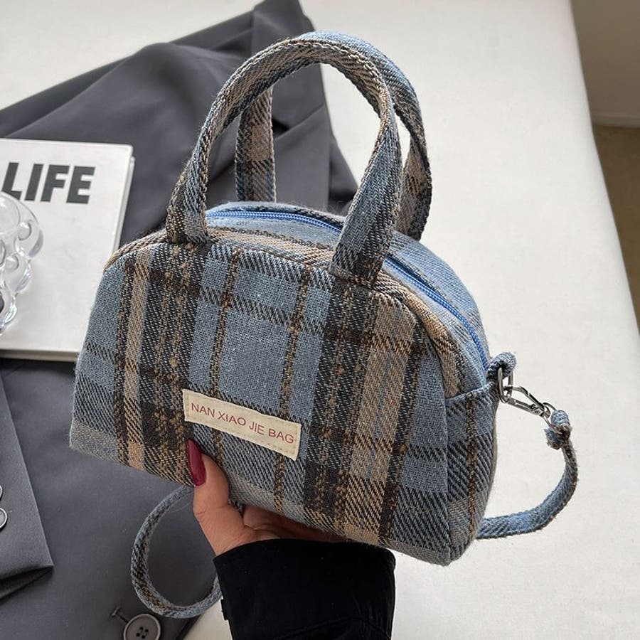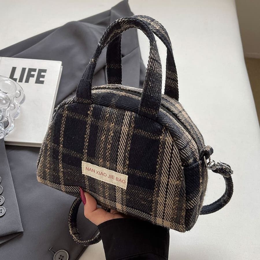 【2タイプ生地選べる】2WAYミニ ハンド チェック柄ショルダーバッグ