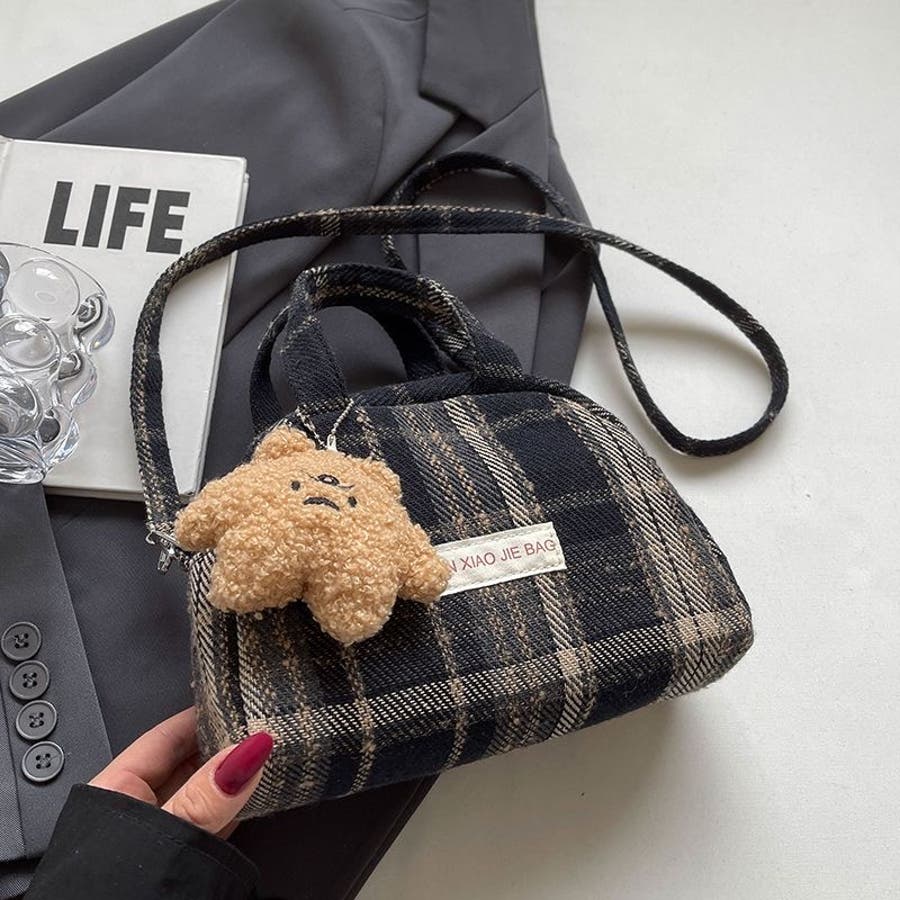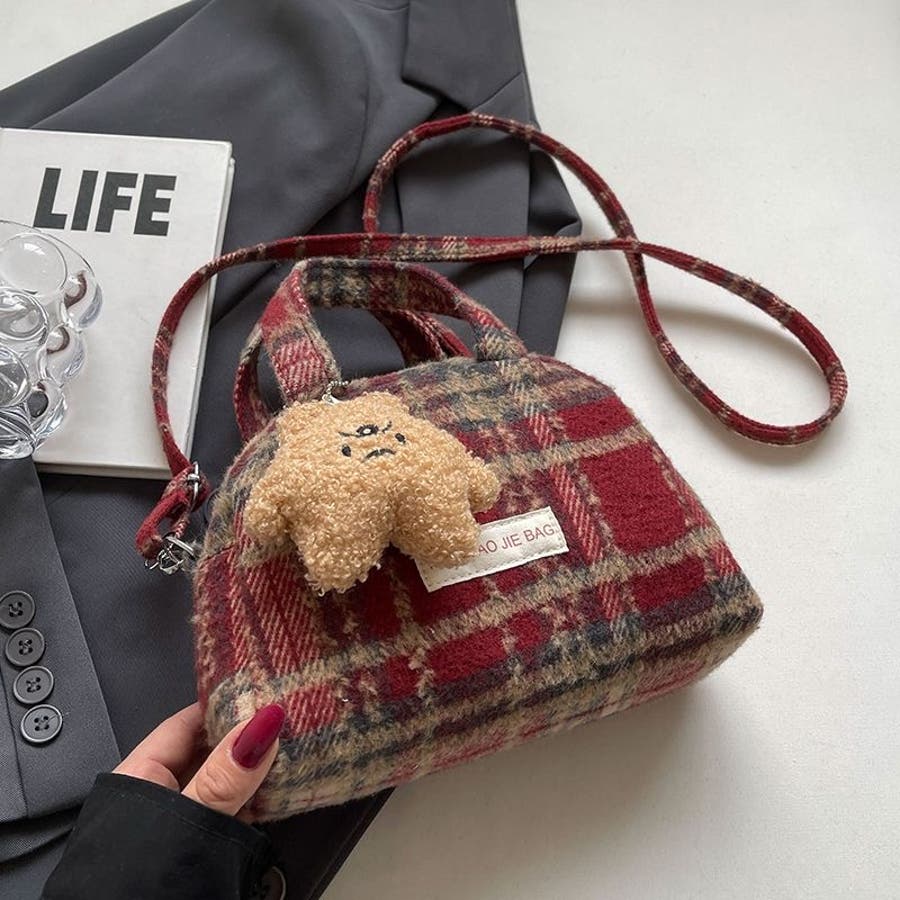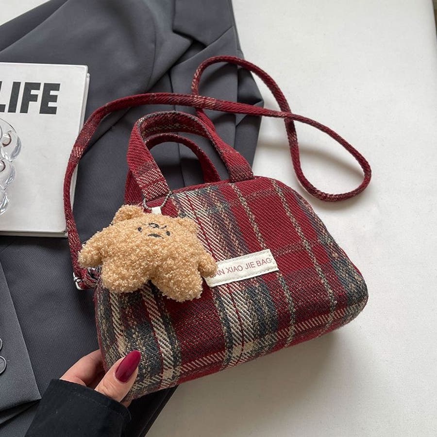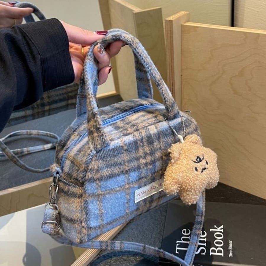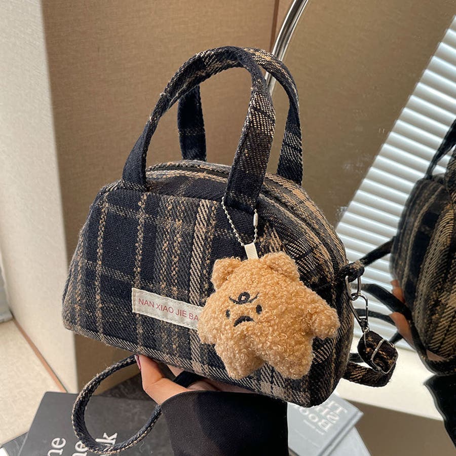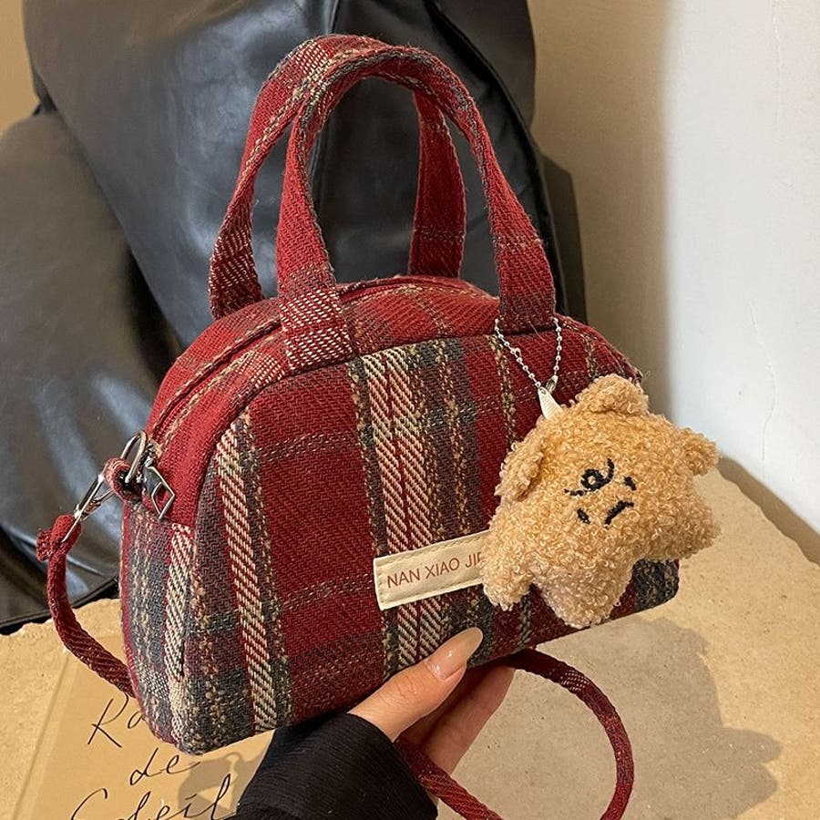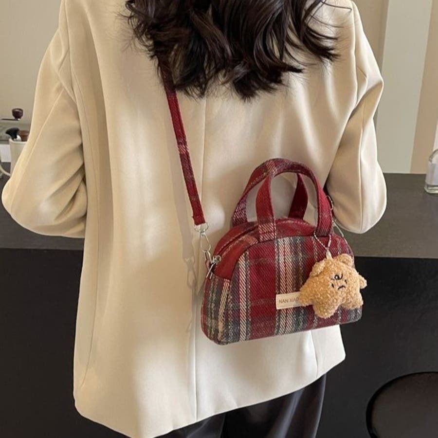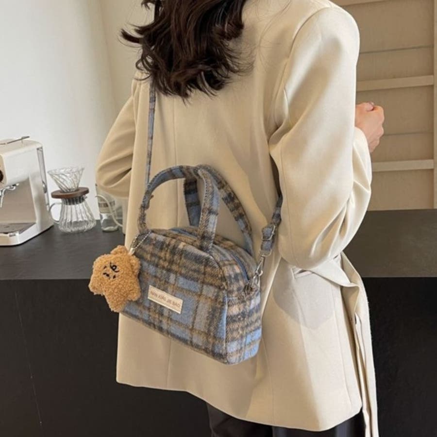 【2タイプ生地選べる】2WAYミニ ハンド チェック柄ショルダーバッグ