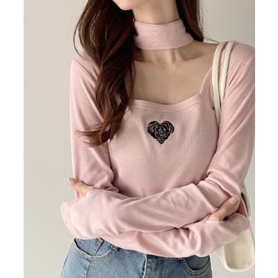 【愛らしいバレエコアアイテム♡タイ付き ハート ローズ 刺繍 スクエアネック バレエコア トップス】