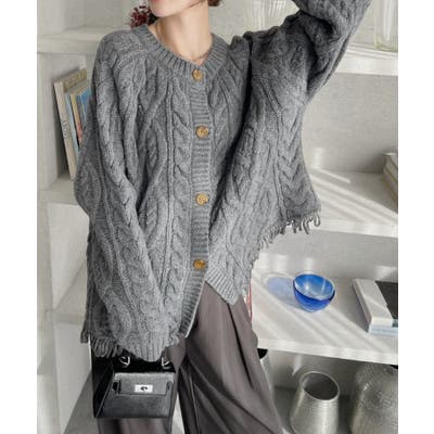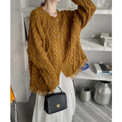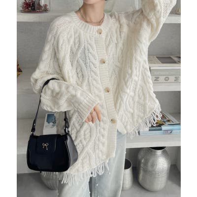 前後2WAY ケーブル フリンジ オーバーサイズ カーディガン