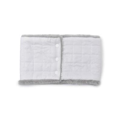 このネックウォーマーには、光沢感のあるタフタ素材と上品さのあるファーフリースが使用されています。