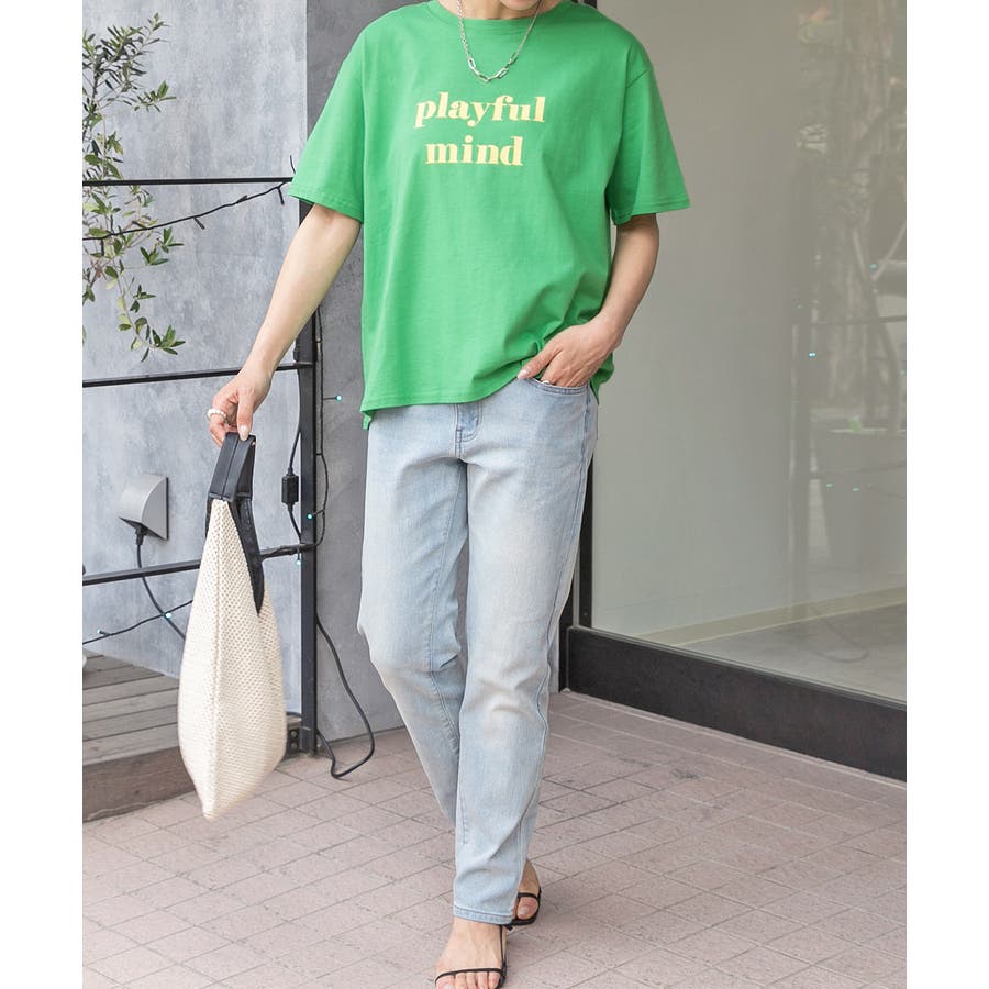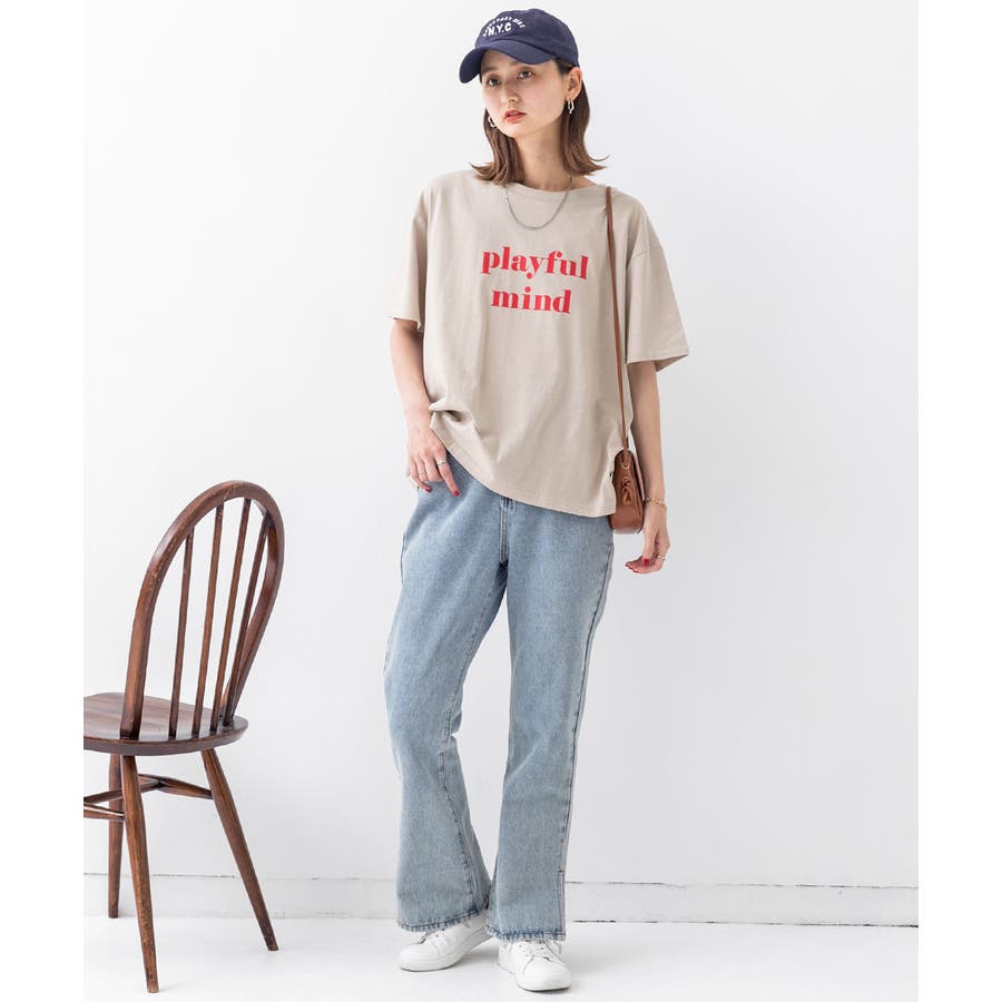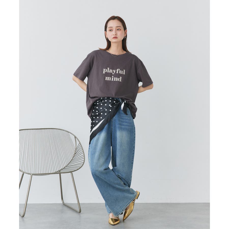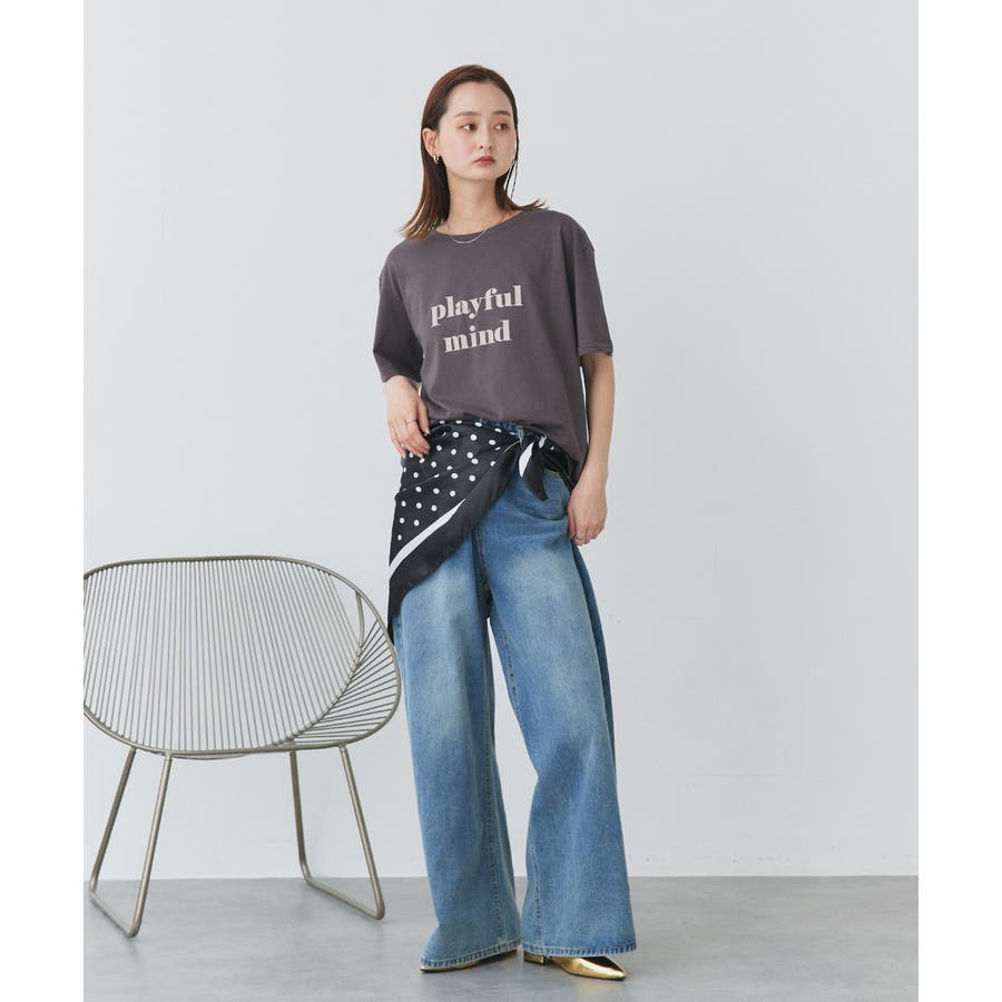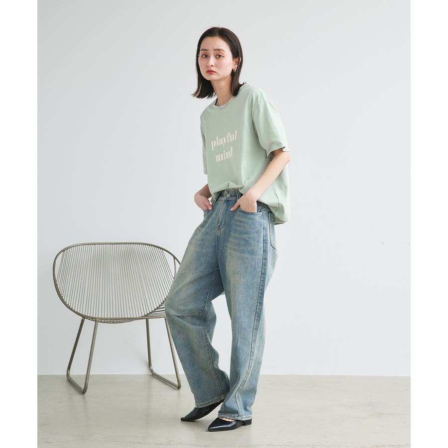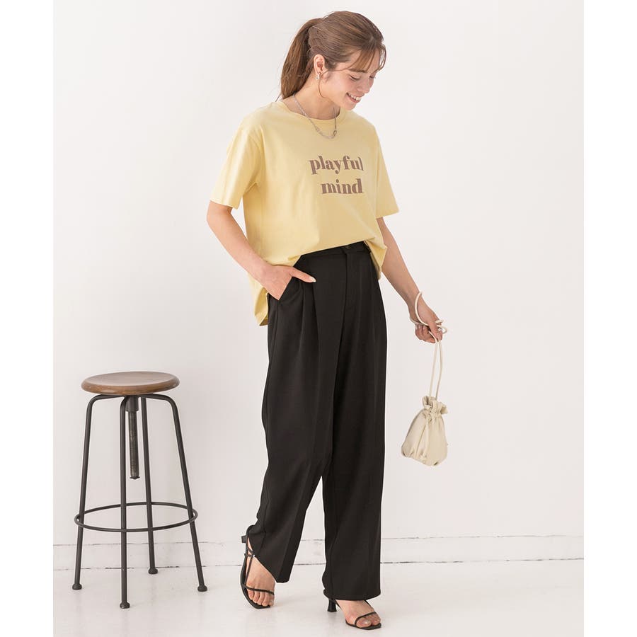 シンプルなボトムにはワンポイントとしてロゴTを合わすと、一気に雰囲気が変わっておしゃれ!